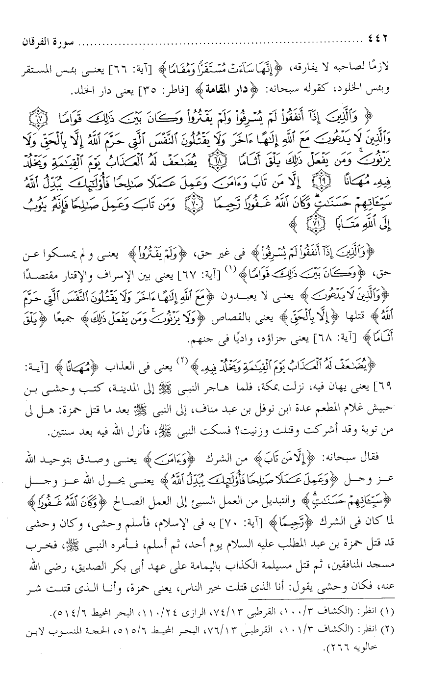 تفسير سورة الفرقان من الآية : [ 67 - 71 ] .