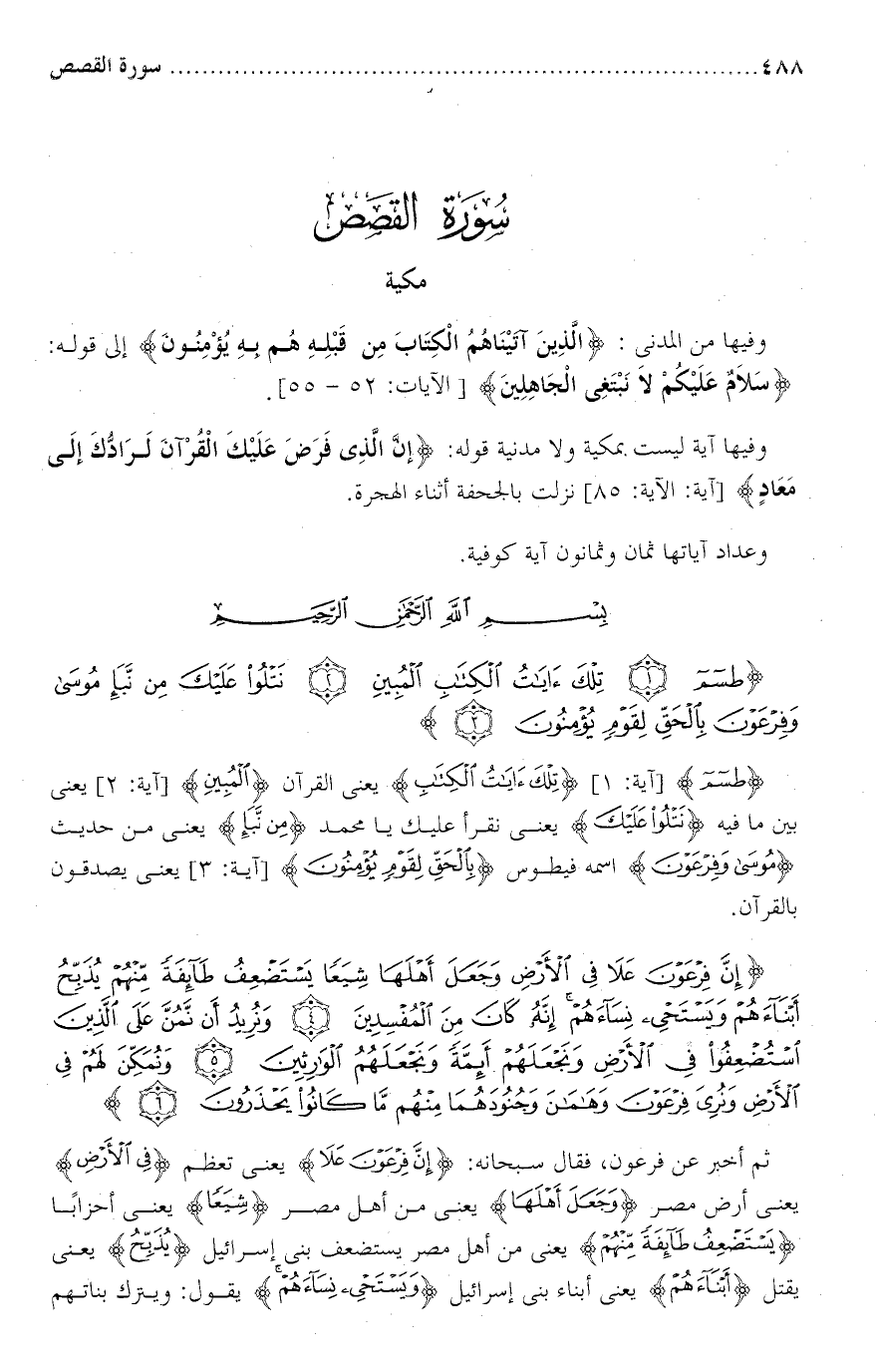 تفسير سورة القصص من الآية : [ 1 - 3 ] .