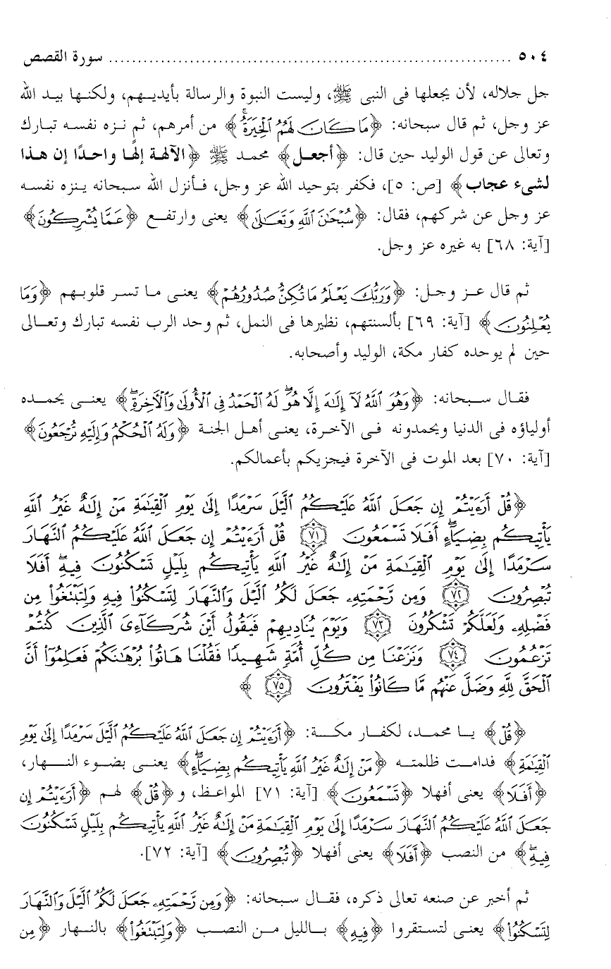 تفسير سورة القصص من الآية : [ 71 - 75 ] .