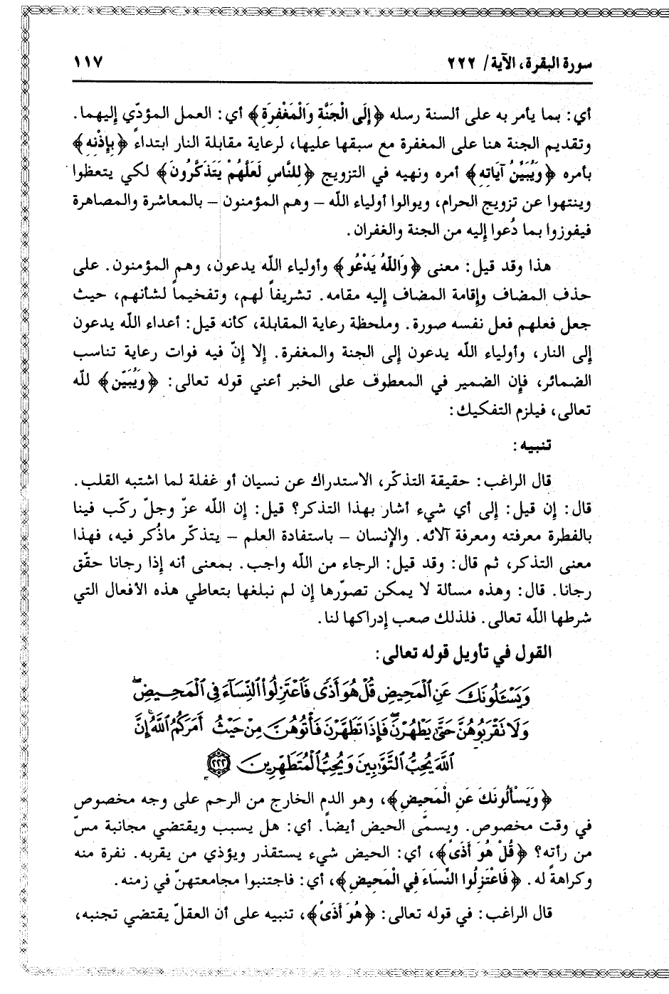 وَيَسْئَلُونَكَ عَنِ الْمَحِيضِ قُلْ هُوَ أَذىً فَاعْتَزِلُوا النِّساءَ فِي الْمَحِيضِ وَلا تَقْرَبُوهُنَّ حَتَّى يَطْهُرْنَ فَإِذا تَطَهَّرْنَ فَأْتُوهُنَّ مِنْ حَيْثُ أَمَرَكُمُ اللَّهُ إِنَّ اللَّهَ يُحِبُّ التَّوَّابِينَ وَيُحِبُّ الْمُتَطَهِّرِينَ (222)