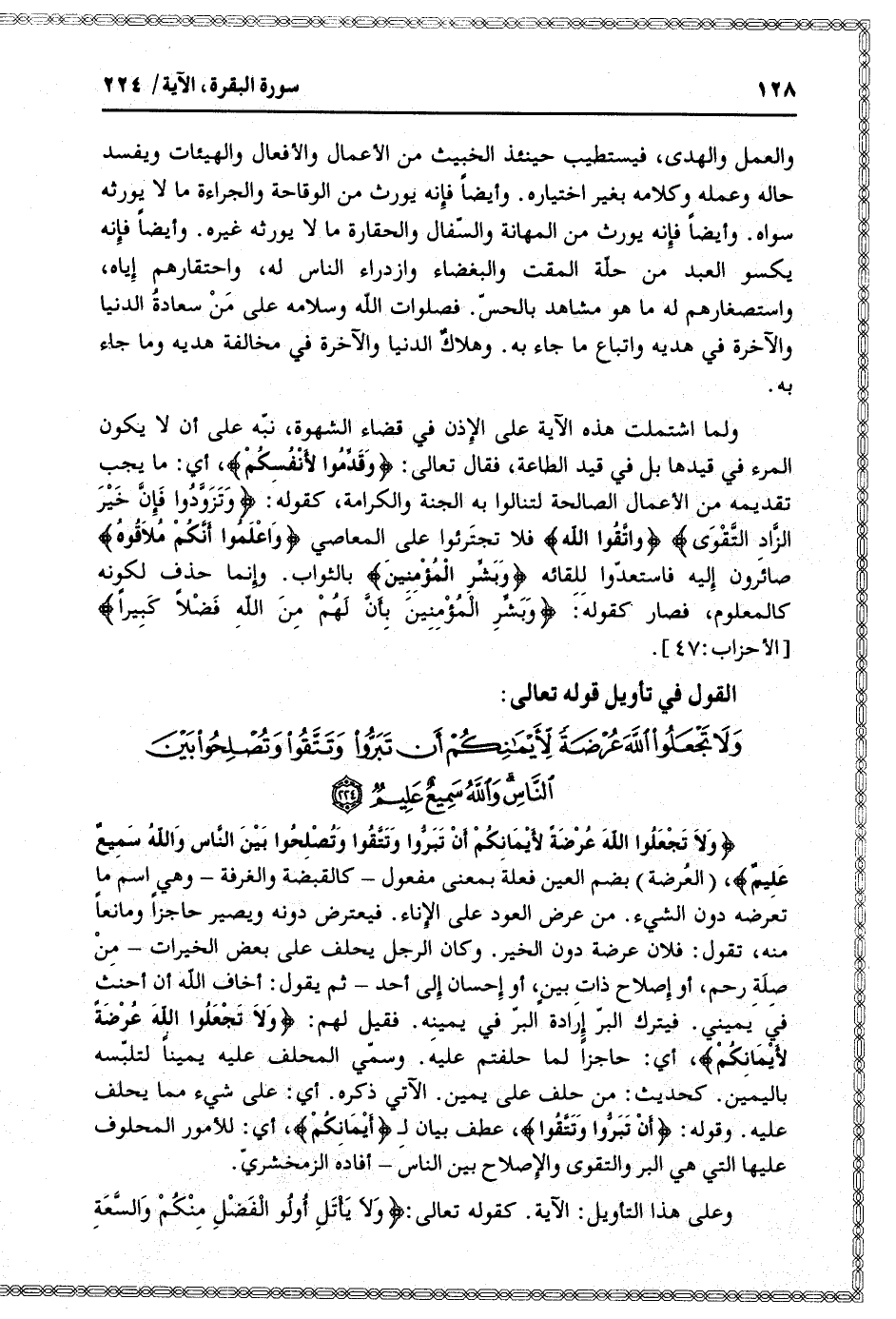 وَلا تَجْعَلُوا اللَّهَ عُرْضَةً لِأَيْمانِكُمْ أَنْ تَبَرُّوا وَتَتَّقُوا وَتُصْلِحُوا بَيْنَ النَّاسِ وَاللَّهُ سَمِيعٌ عَلِيمٌ (224)