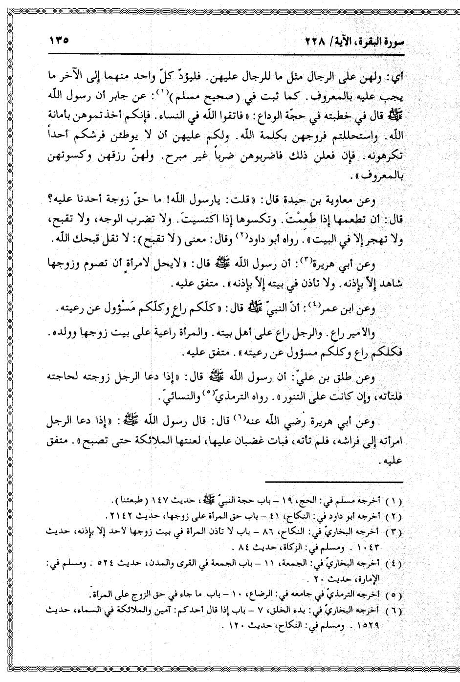 (3) أخرجه البخاريّ في: النكاح، 86- باب لا تأذن المرأة في بيت زوجها لأحد إلا بإذنه، حديث 1043. ومسلم في: الزكاة، حديث 84.