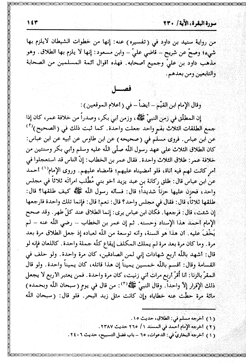 إن المطلّق في زمن النبيّ صلى الله عليه وسلم، وزمن أبي بكر، وصدرا من خلافة عمر، كان إذا جمع الطلقات الثلاث بفم واحد جعلت واحدة. كما ثبت ذلك في (الصحيح) «2» عن ابن عباس. فروى مسلم في (صحيحه) عن ابن طاوس عن أبيه عن ابن عباس: