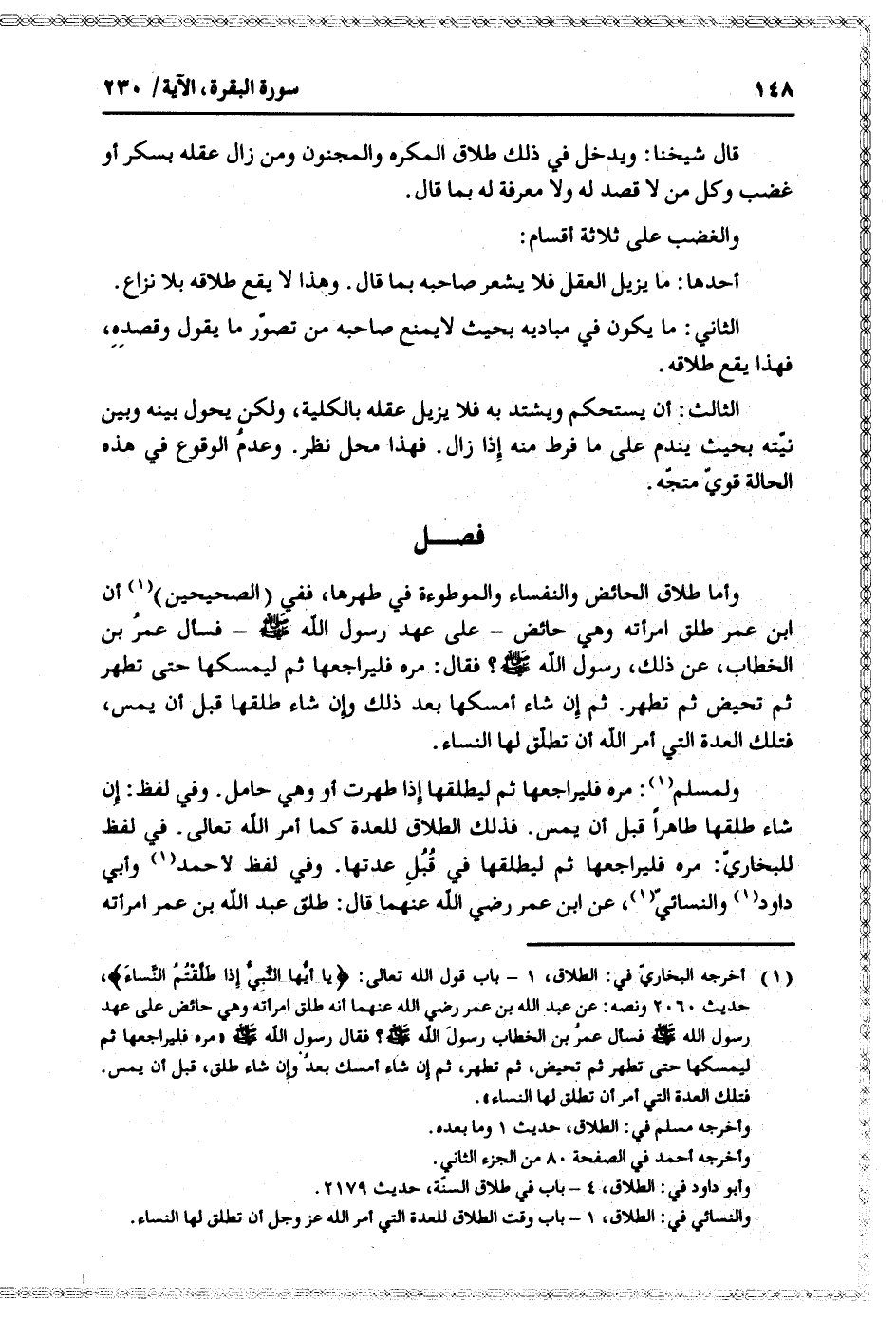 أخرجه البخاريّ في: الطلاق، 1- باب قول الله تعالى: يا أَيُّهَا النَّبِيُّ إِذا طَلَّقْتُمُ النِّساءَ، حديث 2060 ونصه: عن عبد الله بن عمر رضي الله عنهما أنه طلق امرأته وهي حائض على عهد رسول الله صلّى الله عليه وسلم فسأل عمر بن الخطاب رسول الله صلّى الله عليه وسلم؟ فقال رسول الله صلّى الله عليه وسلم «مره فليراجعها ثم ليمسكها حتى تطهر ثم تحيض، ثم تطهر، ثم إن شاء أمسك بعد وإن شاء طلق، قبل أن يمس.