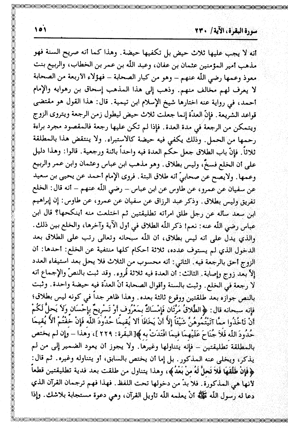 فَإِنْ طَلَّقَها فَلا تَحِلُّ لَهُ مِنْ بَعْدُ، وهذا يتناول من طلقت بعد فدية تطليقتين قطعا لأنها هي المذكورة. فلا بدّ من دخولها تحت اللفظ. فهذا فهم ترجمان القرآن الذي دعا له رسول الله صلّى الله عليه وسلم أن يعلمه الله تأويل القرآن، وهي دعوة مستجابة بلا شك. وإذا