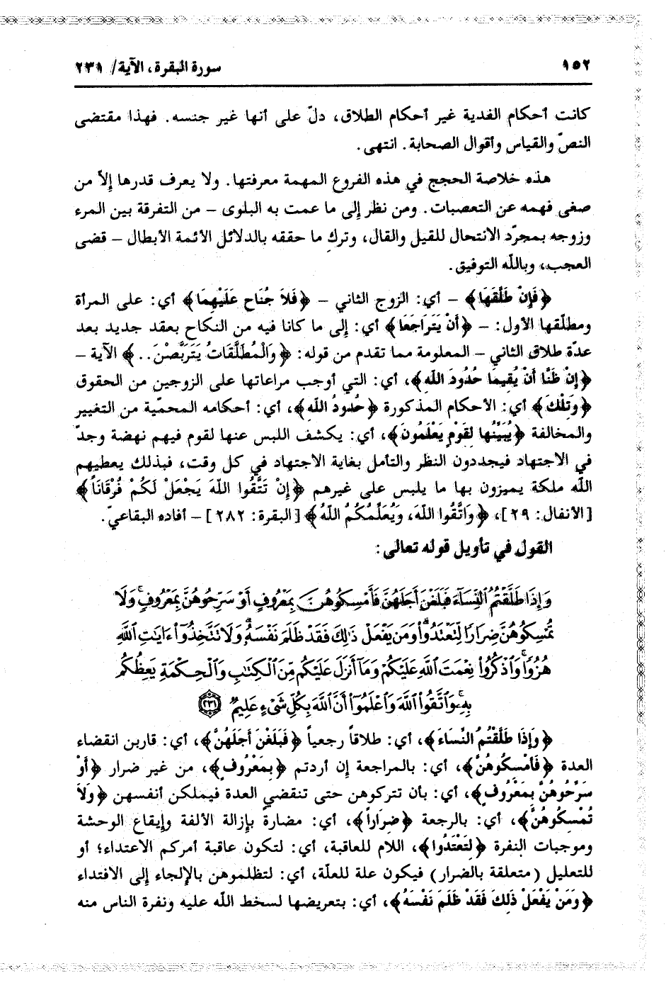 وَإِذا طَلَّقْتُمُ النِّساءَ فَبَلَغْنَ أَجَلَهُنَّ فَأَمْسِكُوهُنَّ بِمَعْرُوفٍ أَوْ سَرِّحُوهُنَّ بِمَعْرُوفٍ وَلا تُمْسِكُوهُنَّ ضِراراً لِتَعْتَدُوا وَمَنْ يَفْعَلْ ذلِكَ فَقَدْ ظَلَمَ نَفْسَهُ وَلا تَتَّخِذُوا آياتِ اللَّهِ هُزُواً وَاذْكُرُوا نِعْمَتَ اللَّهِ عَلَيْكُمْ وَما أَنْزَلَ عَلَيْكُمْ مِنَ الْكِتابِ وَالْحِكْمَةِ يَعِظُكُمْ بِهِ وَاتَّقُوا اللَّهَ وَاعْلَمُوا أَنَّ اللَّهَ بِكُلِّ شَيْءٍ عَلِيمٌ (231)