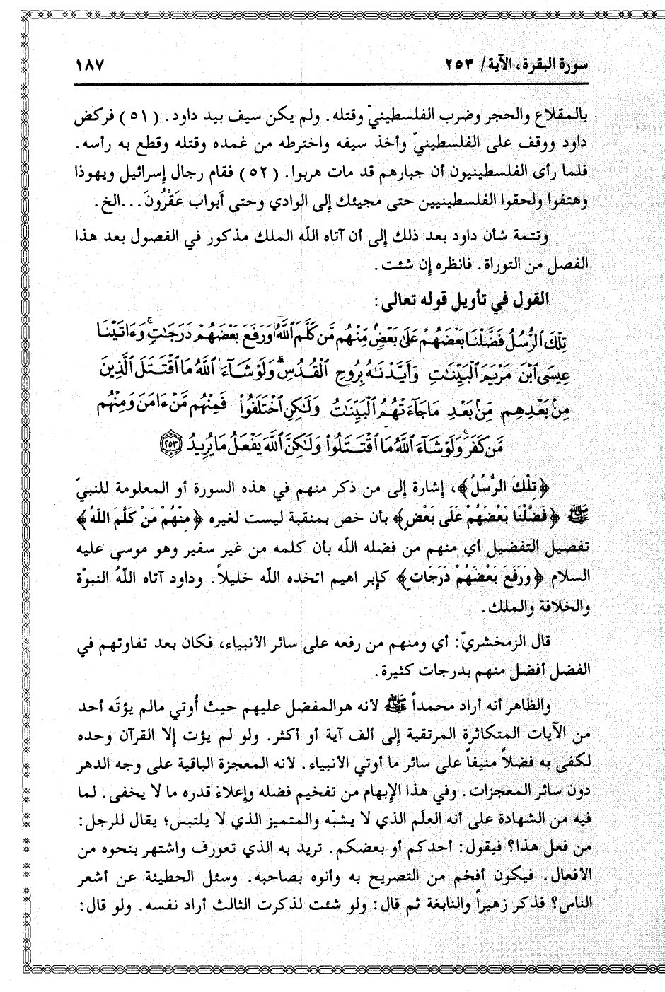 تِلْكَ الرُّسُلُ فَضَّلْنا بَعْضَهُمْ عَلى بَعْضٍ مِنْهُمْ مَنْ كَلَّمَ اللَّهُ وَرَفَعَ بَعْضَهُمْ دَرَجاتٍ وَآتَيْنا عِيسَى ابْنَ مَرْيَمَ الْبَيِّناتِ وَأَيَّدْناهُ بِرُوحِ الْقُدُسِ وَلَوْ شاءَ اللَّهُ مَا اقْتَتَلَ الَّذِينَ مِنْ بَعْدِهِمْ مِنْ بَعْدِ ما جاءَتْهُمُ الْبَيِّناتُ وَلكِنِ اخْتَلَفُوا فَمِنْهُمْ مَنْ آمَنَ وَمِنْهُمْ مَنْ كَفَرَ وَلَوْ شاءَ اللَّهُ مَا اقْتَتَلُوا وَلكِنَّ اللَّهَ يَفْعَلُ ما يُرِيدُ (253)