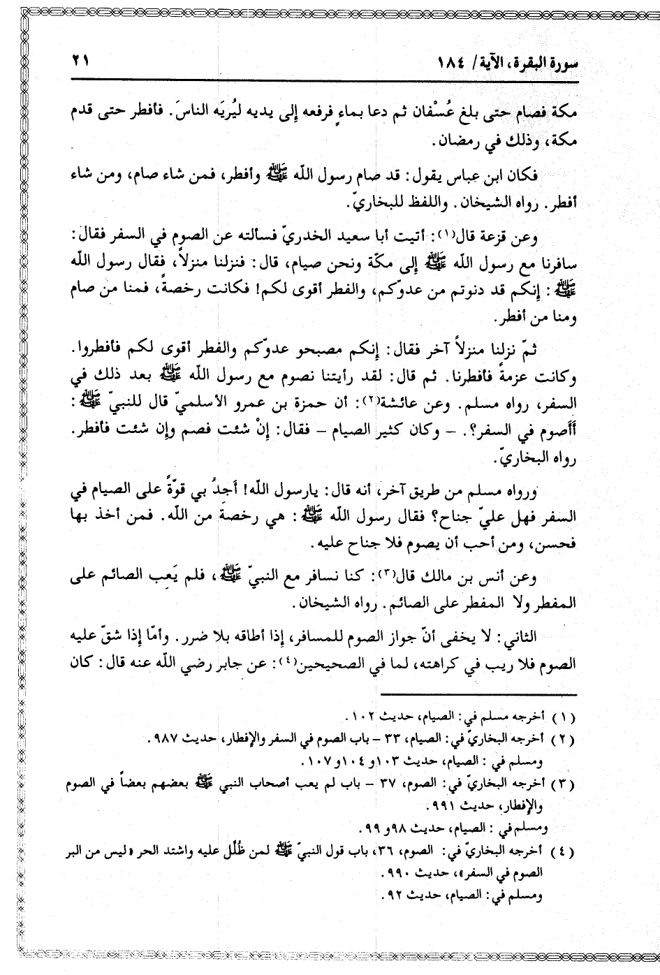 (3) أخرجه البخاريّ في: الصوم، 37- باب لم يعب أصحاب النبي صلّى الله عليه وسلّم بعضهم بعضا في الصوم والإفطار، حديث 991.