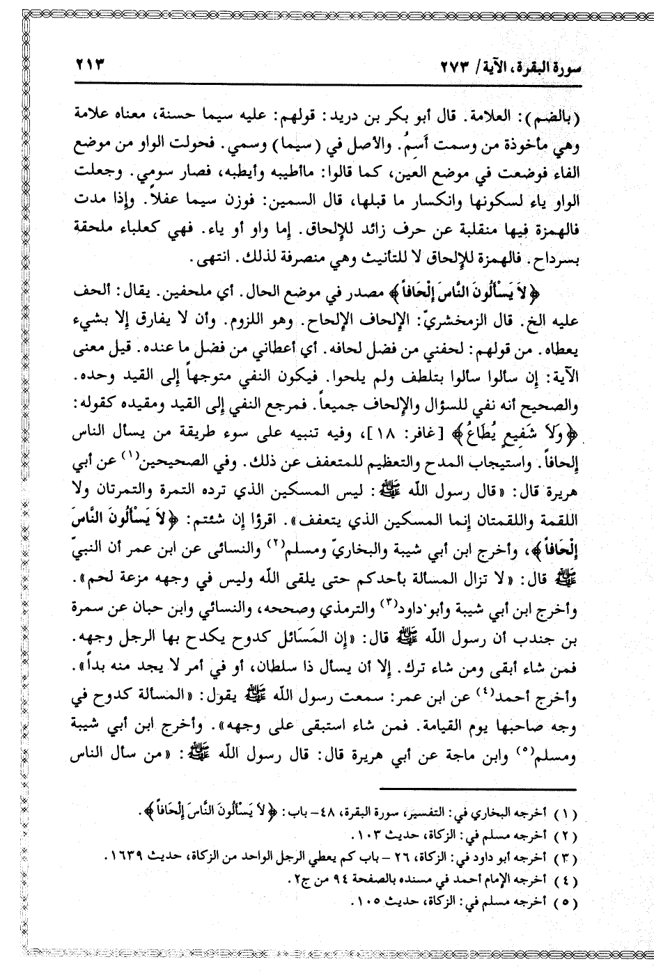 (1) أخرجه البخاري في: التفسير، سورة البقرة، 48- باب: لا يَسْئَلُونَ النَّاسَ إِلْحافاً.