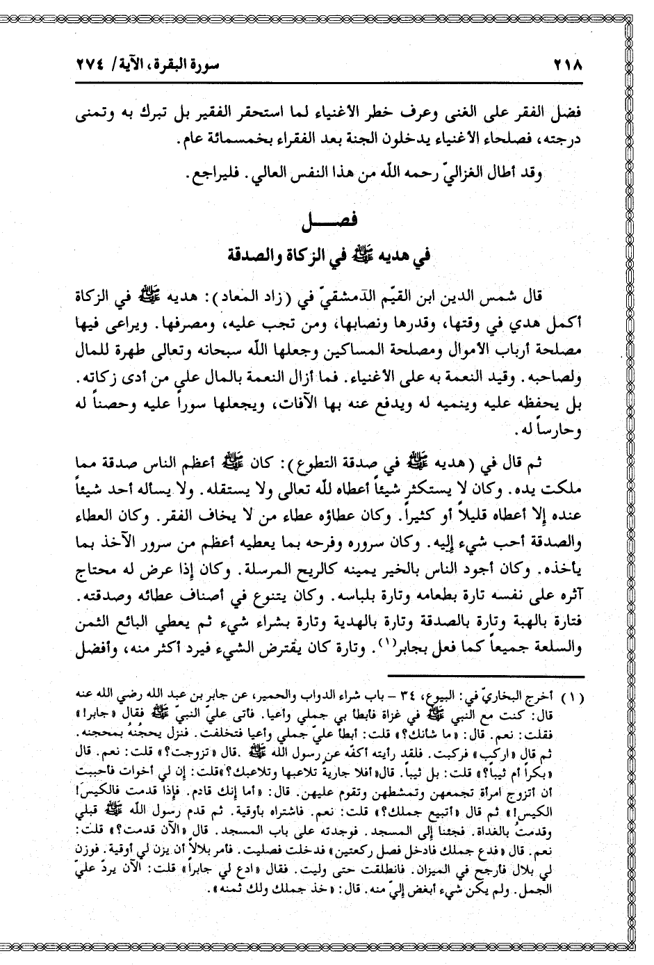 قال شمس الدين ابن القيّم الدمشقيّ في (زاد المعاد) : هديه صلّى الله عليه وسلم في الزكاة أكمل هدي في وقتها، وقدرها ونصابها، ومن تجب عليه، ومصرفها. ويراعى فيها مصلحة أرباب الأموال ومصلحة المساكين وجعلها الله سبحانه وتعالى طهرة للمال ولصاحبه. وقيد النعمة به على الأغنياء. فما أزال النعمة بالمال على من أدى زكاته.