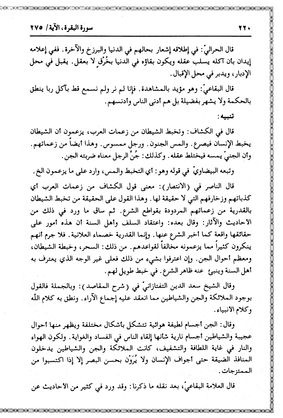 قال البقاعيّ: وهو مؤيد بالمشاهدة. فإنا لم نر ولم نسمع قط بآكل ربا ينطق بالحكمة ولا يشهر بفضيلة بل هم أدنى الناس وأدنسهم.