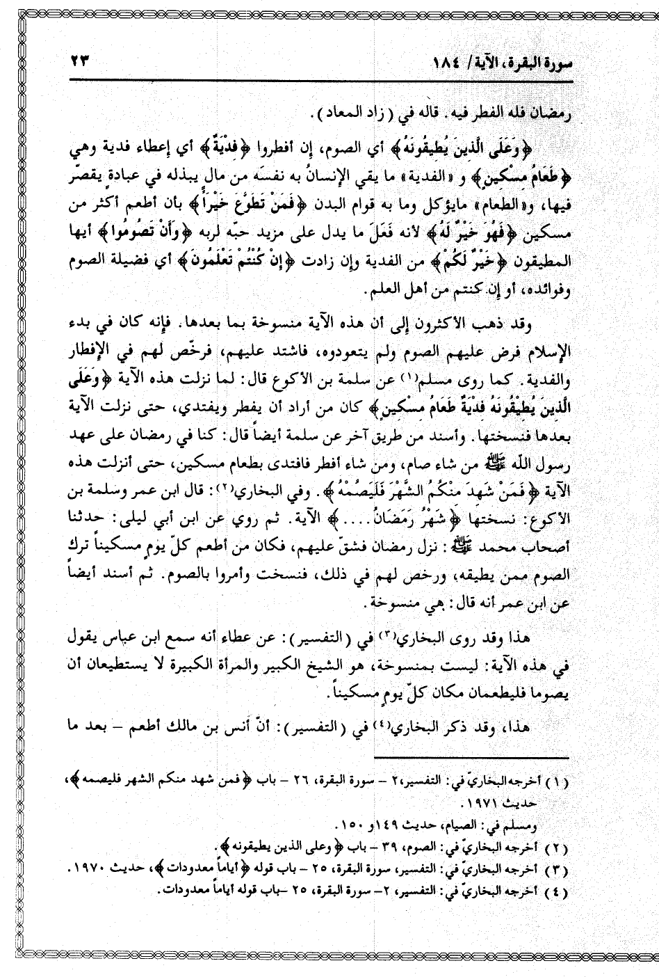 (1) أخرجه البخاريّ في: التفسير، 2- سورة البقرة، 26- باب فَمَنْ شَهِدَ مِنْكُمُ الشَّهْرَ فَلْيَصُمْهُ، حديث 1971.