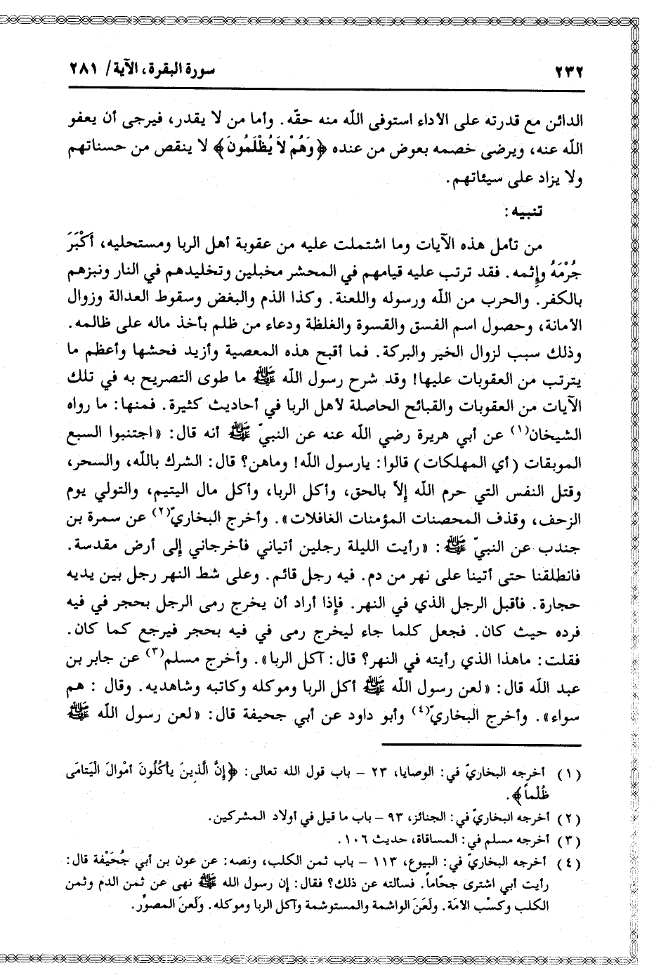 (1) أخرجه البخاريّ في: الوصايا، 23- باب قول الله تعالى: إِنَّ الَّذِينَ يَأْكُلُونَ أَمْوالَ الْيَتامى ظُلْماً.