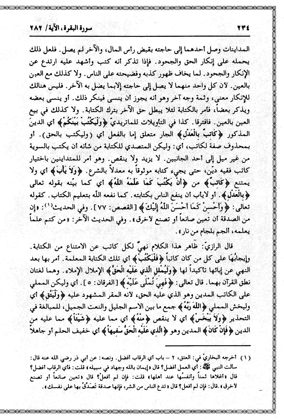 قال الرازيّ: ظاهر هذا الكلام نهي لكل كاتب عن الامتناع من الكتابة.