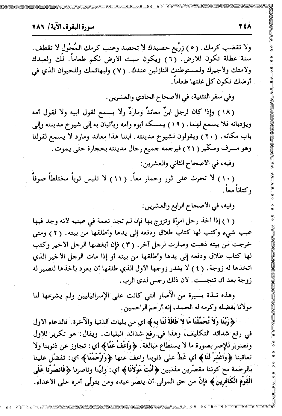 (10) لا تحرث على ثور وحمار معا. (11) لا تلبس ثوبا مختلطا صوفا وكتانا معا.