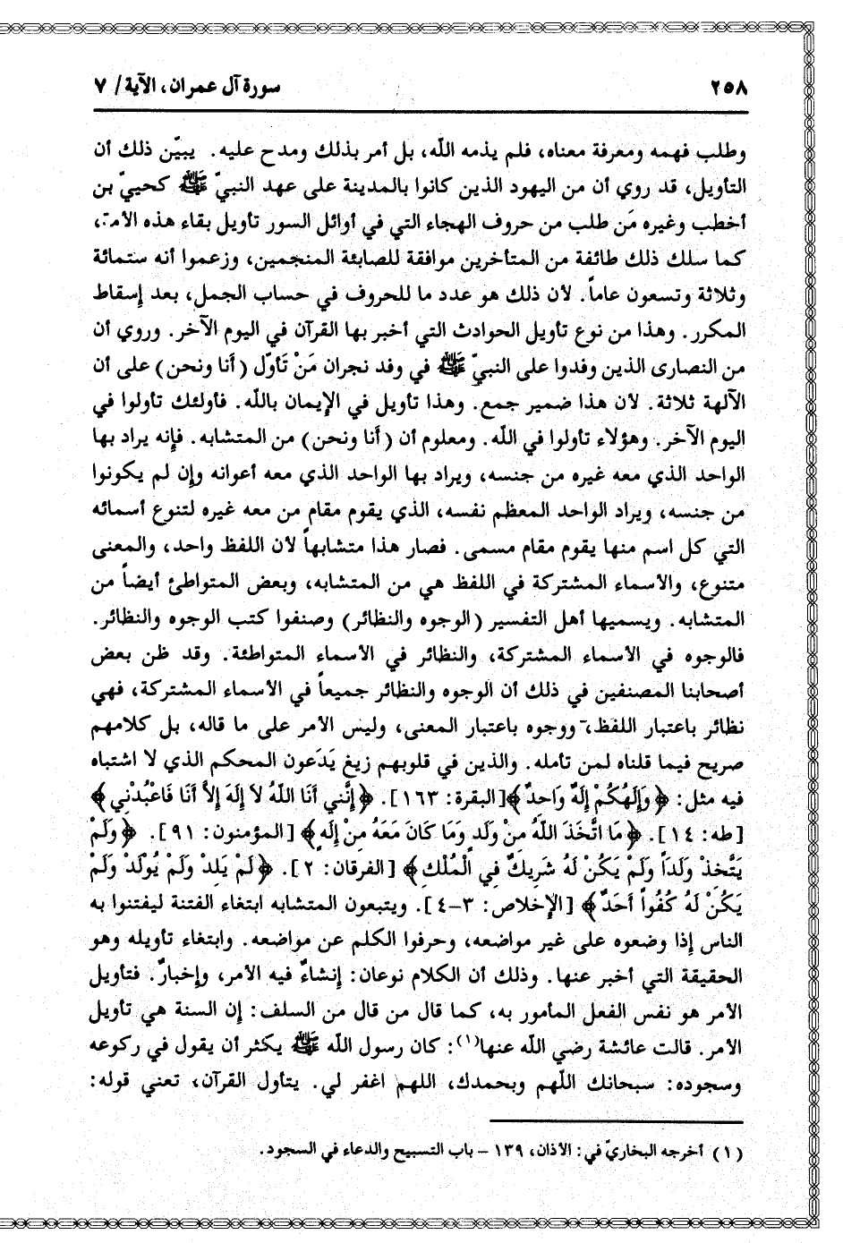 فالوجوه في الأسماء المشتركة، والنظائر في الأسماء المتواطئة. وقد ظن بعض أصحابنا المصنفين في ذلك أن الوجوه والنظائر جميعا في الأسماء المشتركة، فهي نظائر باعتبار اللفظ، ووجوه باعتبار المعنى، وليس الأمر على ما قاله، بل كلامهم صريح فيما قلناه لمن تأمله. والذين في قلوبهم زيغ يدعون المحكم الذي لا اشتباه فيه مثل: وَإِلهُكُمْ إِلهٌ واحِدٌ [البقرة: 163] . إِنَّنِي أَنَا اللَّهُ لا إِلهَ إِلَّا أَنَا فَاعْبُدْنِي [طه: 14] . مَا اتَّخَذَ اللَّهُ مِنْ وَلَدٍ وَما كانَ مَعَهُ مِنْ إِلهٍ [المؤمنون: 91] . وَلَمْ يَتَّخِذْ وَلَداً وَلَمْ يَكُنْ لَهُ شَرِيكٌ فِي الْمُلْكِ [الفرقان: 2] . لَمْ يَلِدْ وَلَمْ يُولَدْ وَلَمْ يَكُنْ لَهُ كُفُواً أَحَدٌ [الإخلاص: 3- 4] . ويتبعون المتشابه ابتغاء الفتنة ليفتنوا به الناس إذا وضعوه على غير مواضعه، وحرفوا الكلم عن مواضعه. وابتغاء تأويله وهو الحقيقة التي أخبر عنها. وذلك أن الكلام نوعان: إنشاء فيه الأمر، وإخبار. فتأويل الأمر هو نفس الفعل المأمور به، كما قال من قال من السلف: إن السنة هي تأويل الأمر.