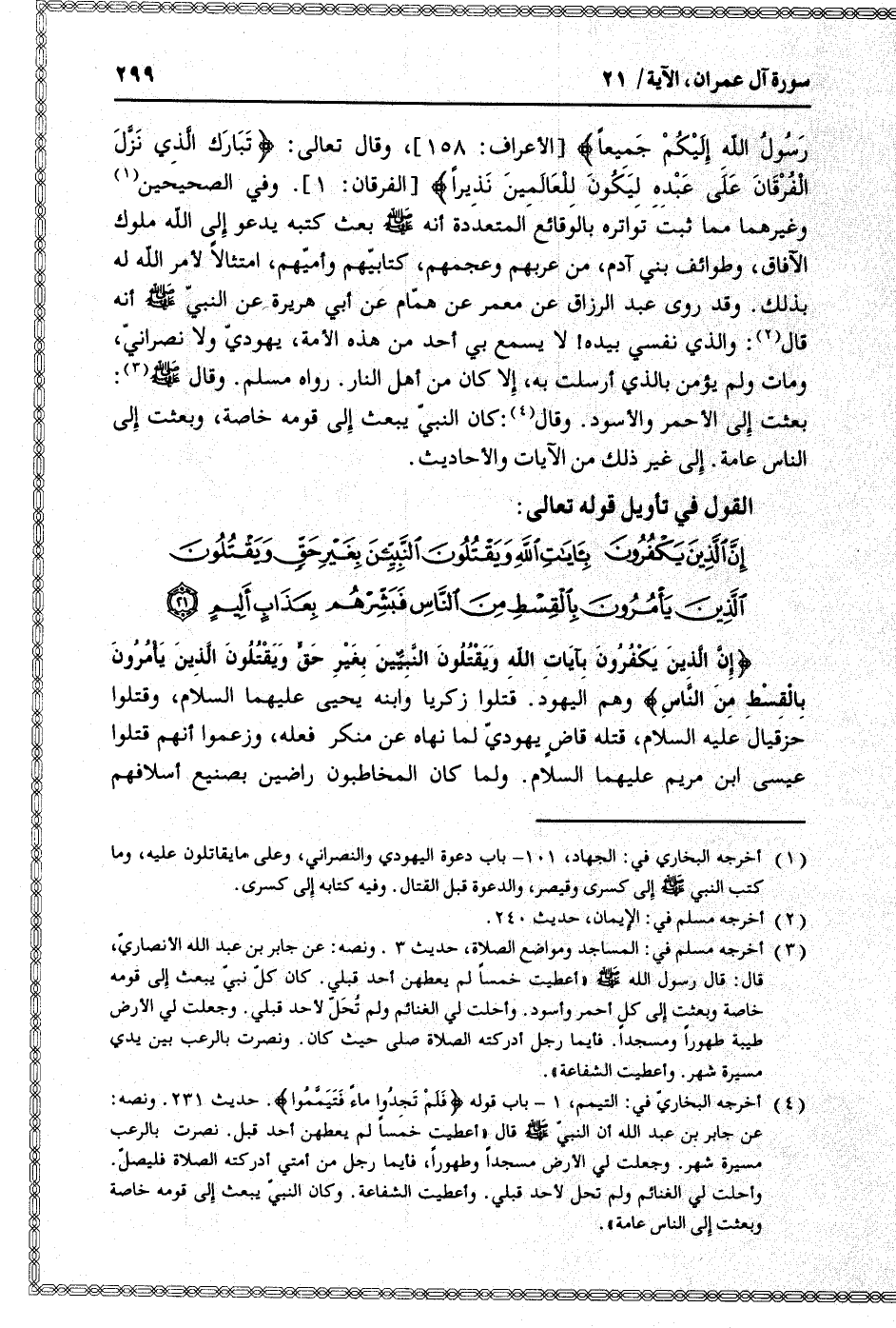 القول في تأويل قوله تعالى: [سورة آل عمران (3) : آية 21]