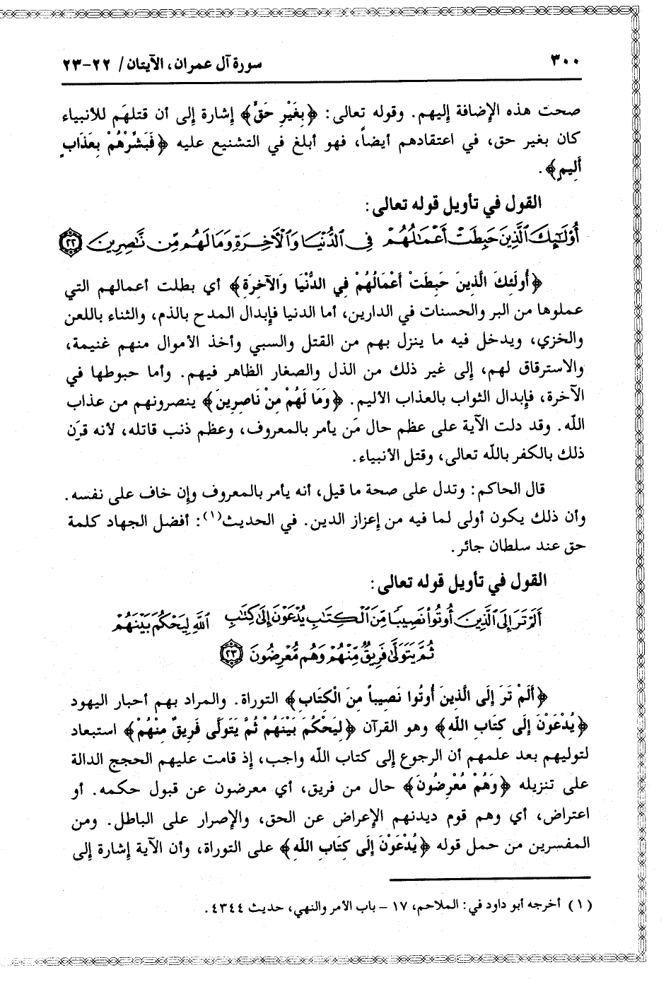 أَلَمْ تَرَ إِلَى الَّذِينَ أُوتُوا نَصِيباً مِنَ الْكِتابِ يُدْعَوْنَ إِلى كِتابِ اللَّهِ لِيَحْكُمَ بَيْنَهُمْ ثُمَّ يَتَوَلَّى فَرِيقٌ مِنْهُمْ وَهُمْ مُعْرِضُونَ (23)