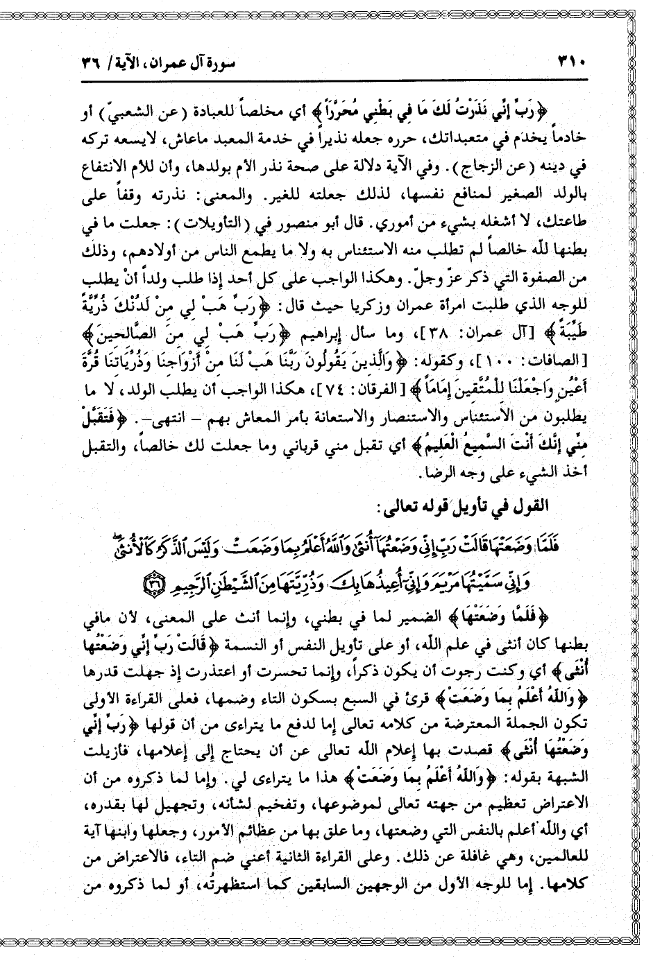 القول في تأويل قوله تعالى: [سورة آل عمران (3) : آية 36]