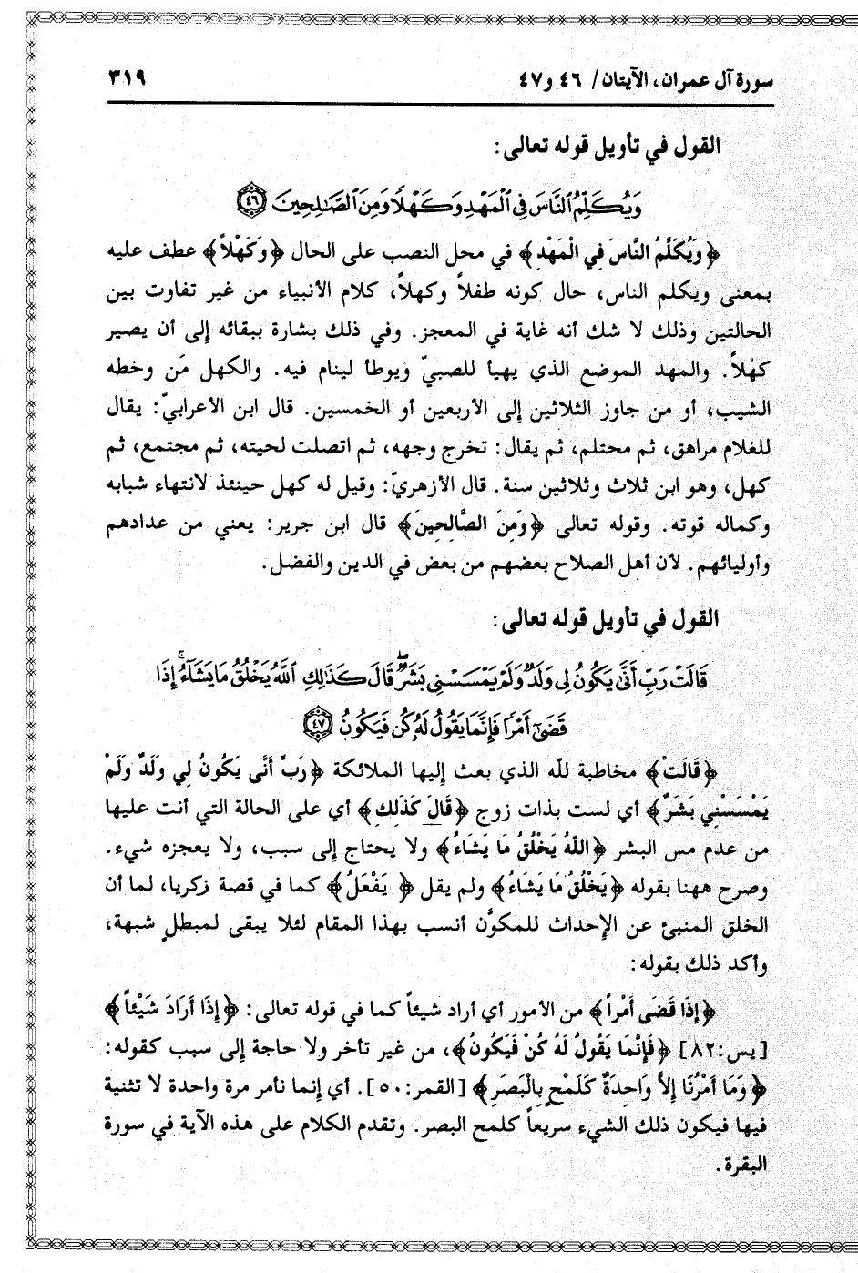 القول في تأويل قوله تعالى: [سورة آل عمران (3) : آية 46]
