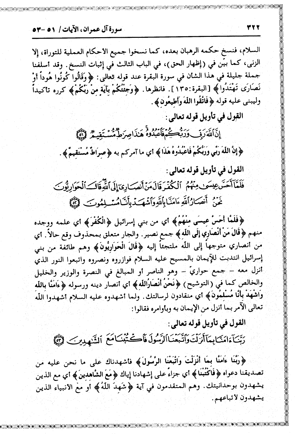 القول في تأويل قوله تعالى: [سورة آل عمران (3) : آية 51]