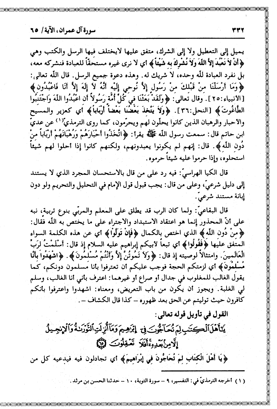 القول في تأويل قوله تعالى: [سورة آل عمران (3) : آية 65]