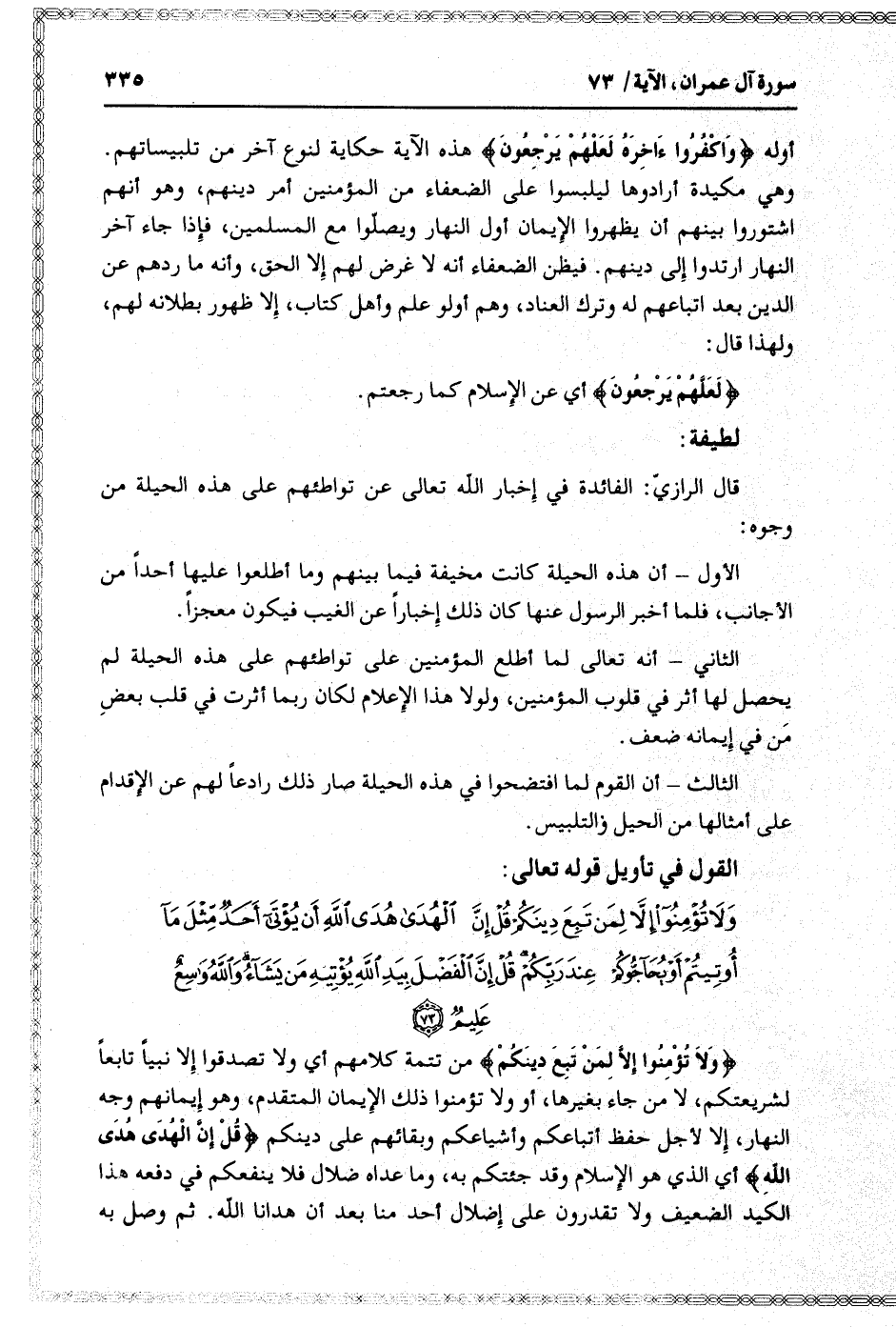 القول في تأويل قوله تعالى: [سورة آل عمران (3) : آية 73]