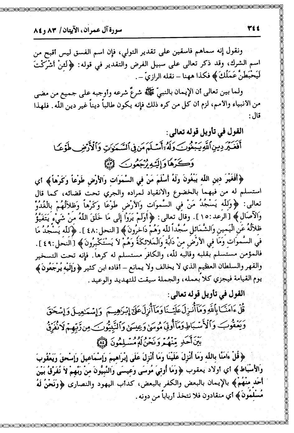 القول في تأويل قوله تعالى: [سورة آل عمران (3) : آية 84]