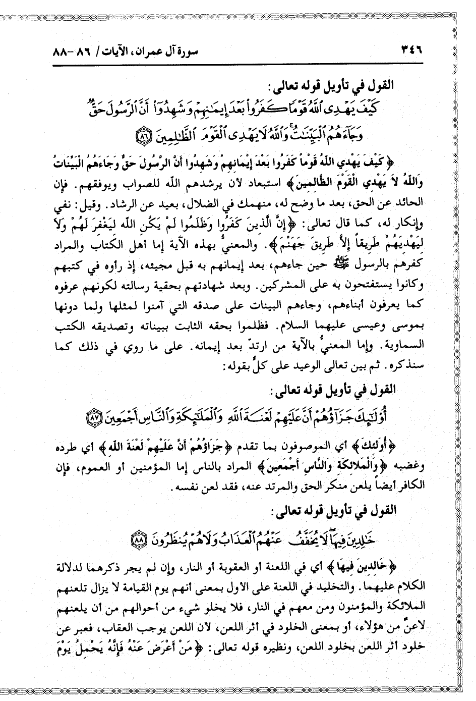 القول في تأويل قوله تعالى: [سورة آل عمران (3) : آية 86]