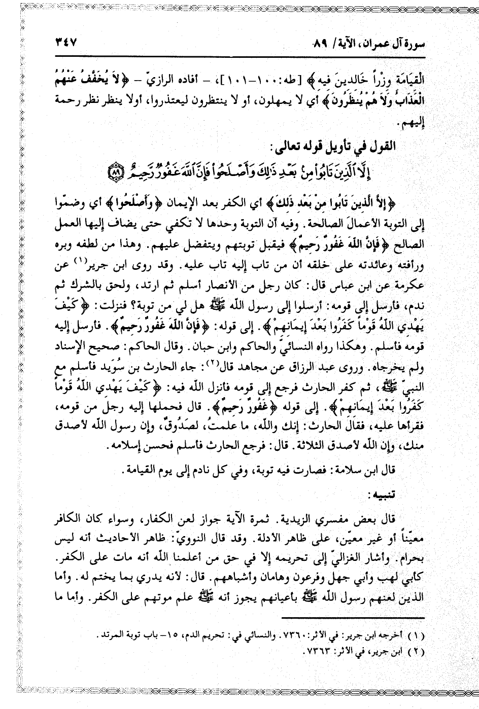 القول في تأويل قوله تعالى: [سورة آل عمران (3) : آية 89]
