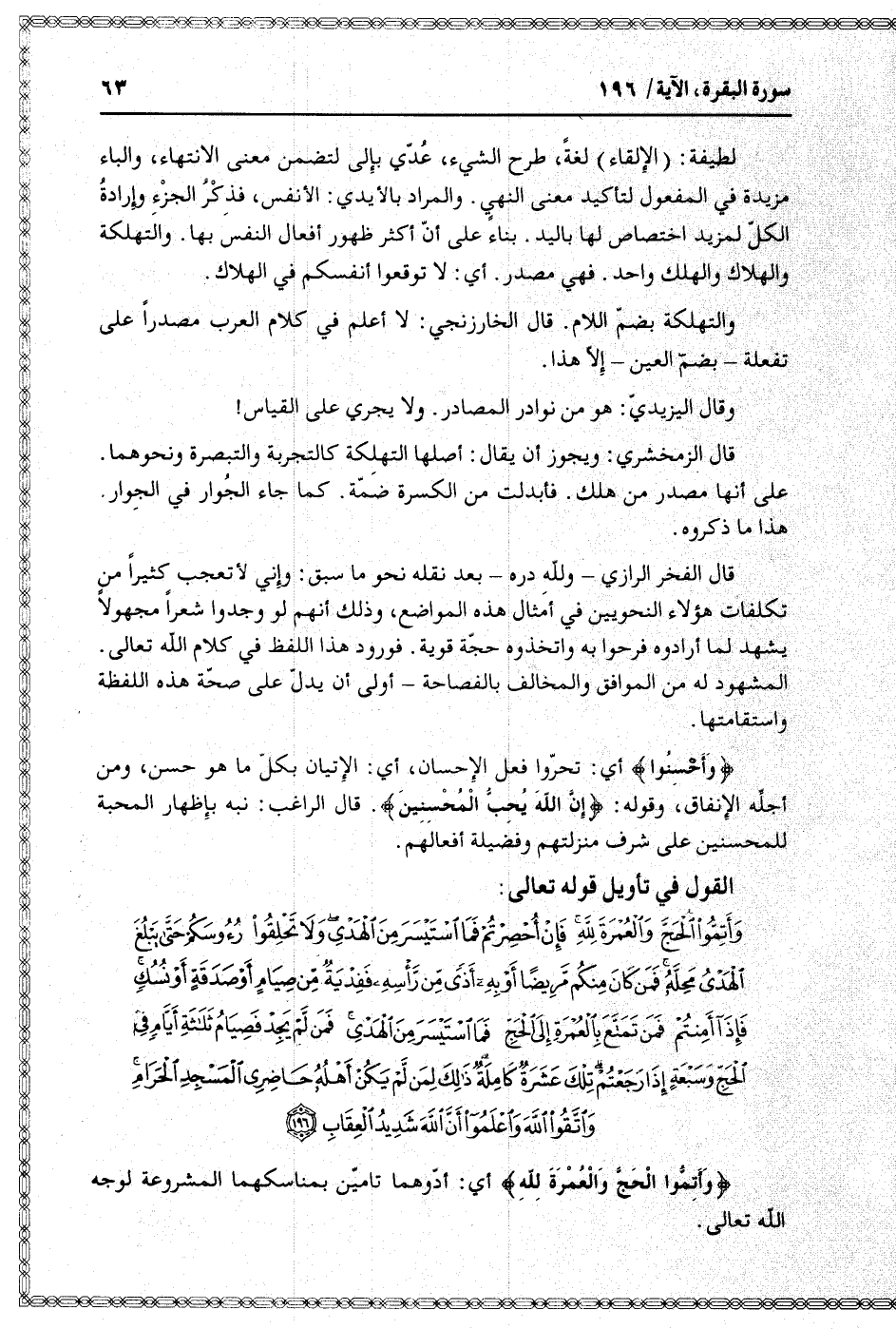 وَأَحْسِنُوا أي: تحرّوا فعل الإحسان، أي: الإتيان بكلّ ما هو حسن، ومن أجلّه الإنفاق، وقوله: إِنَّ اللَّهَ يُحِبُّ الْمُحْسِنِينَ. قال الراغب: نبه بإظهار المحبة للمحسنين على شرف منزلتهم وفضيلة أفعالهم.