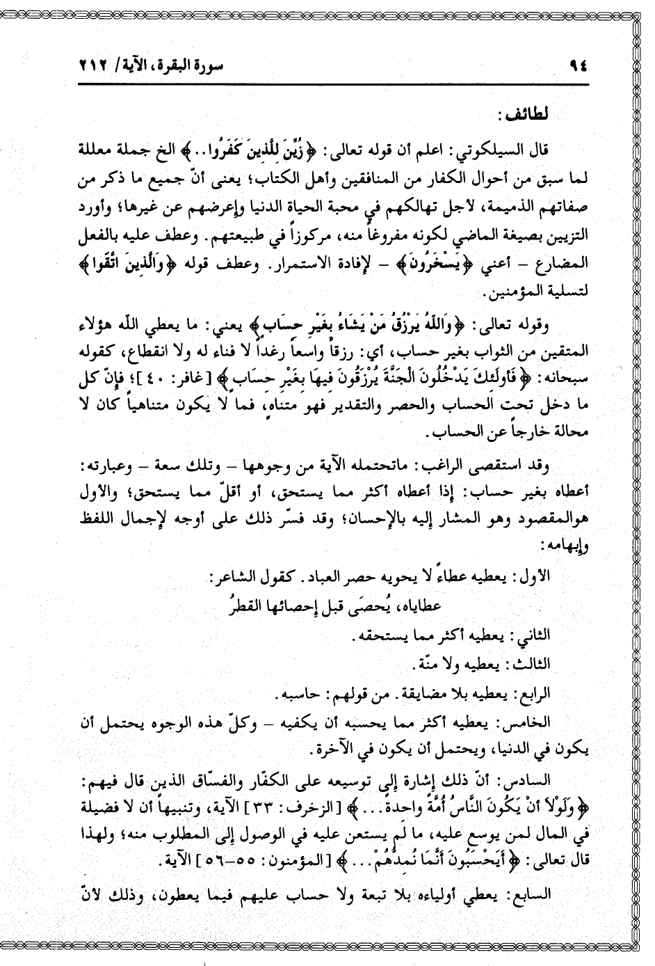 وقد استقصى الراغب: ما تحتمله الآية من وجوهها- وتلك سعة- وعبارته: