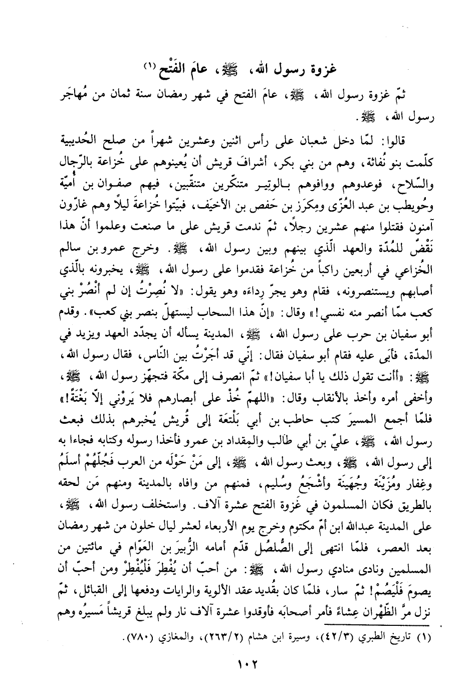 (1) تاريخ الطبري (3/ 42) ، وسيرة ابن هشام (2/ 263) ، والمغازي (780) .