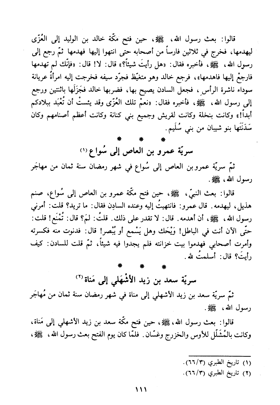 ثُمَّ سرية عمرو بن العاص إلى سواع فِي شهر رمضان سنة ثمان مِن مهاجر رَسُولِ اللَّهِ - صَلَّى اللَّهُ عَلَيْهِ وَسَلَّمَ -