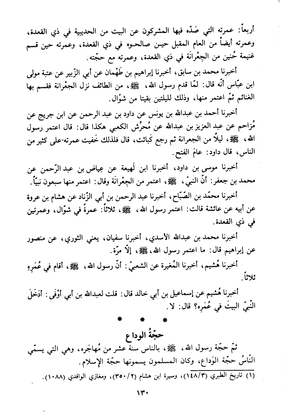 ثُمَّ حجة رَسُول اللَّهِ - صَلَّى اللَّهُ عَلَيْهِ وَسَلَّمَ - بِالنَّاسِ سنة عشر من مهاجره. وهي الّتي يسمي النّاس حجة الوداع. وكان المسلمون يسمونها حجة الإسلام.