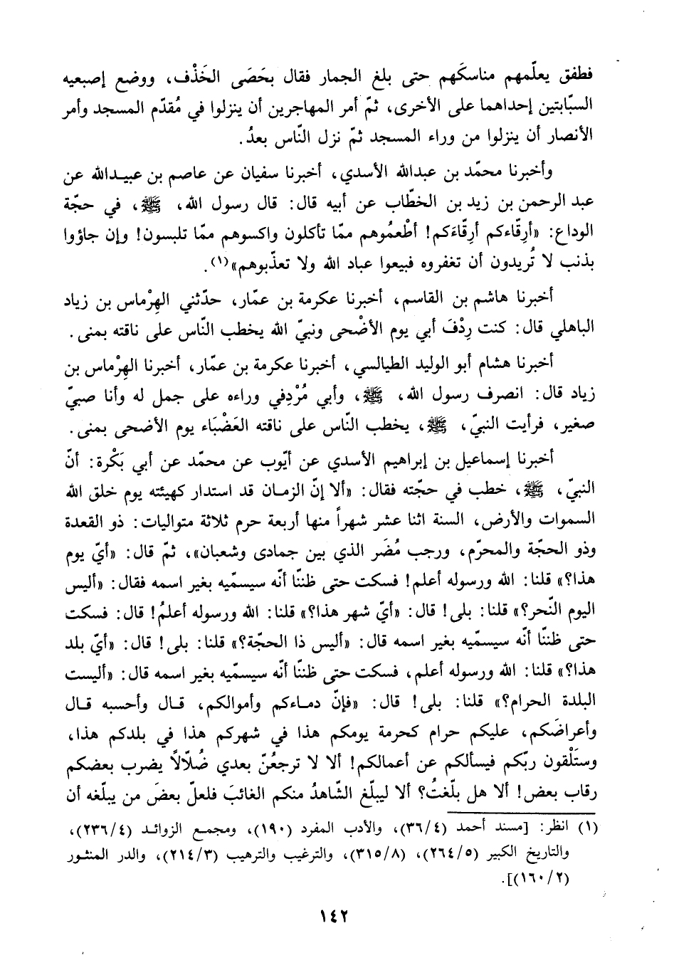 وَسَتَلْقَوْنَ رَبَّكُمْ فَيَسْأَلَكُمْ عَنْ أَعْمَالِكُمْ! أَلا لا تَرْجِعُنَّ بَعْدِي ضُلالًا يَضْرِبُ بَعْضُكُمْ رِقَابَ بَعْضٍ! أَلا هَلْ بَلَّغْتُ؟ أَلا لِيُبَلِّغَ الشَّاهِدُ مِنْكُمُ الغائب فلعل بعض من يبلغه أن