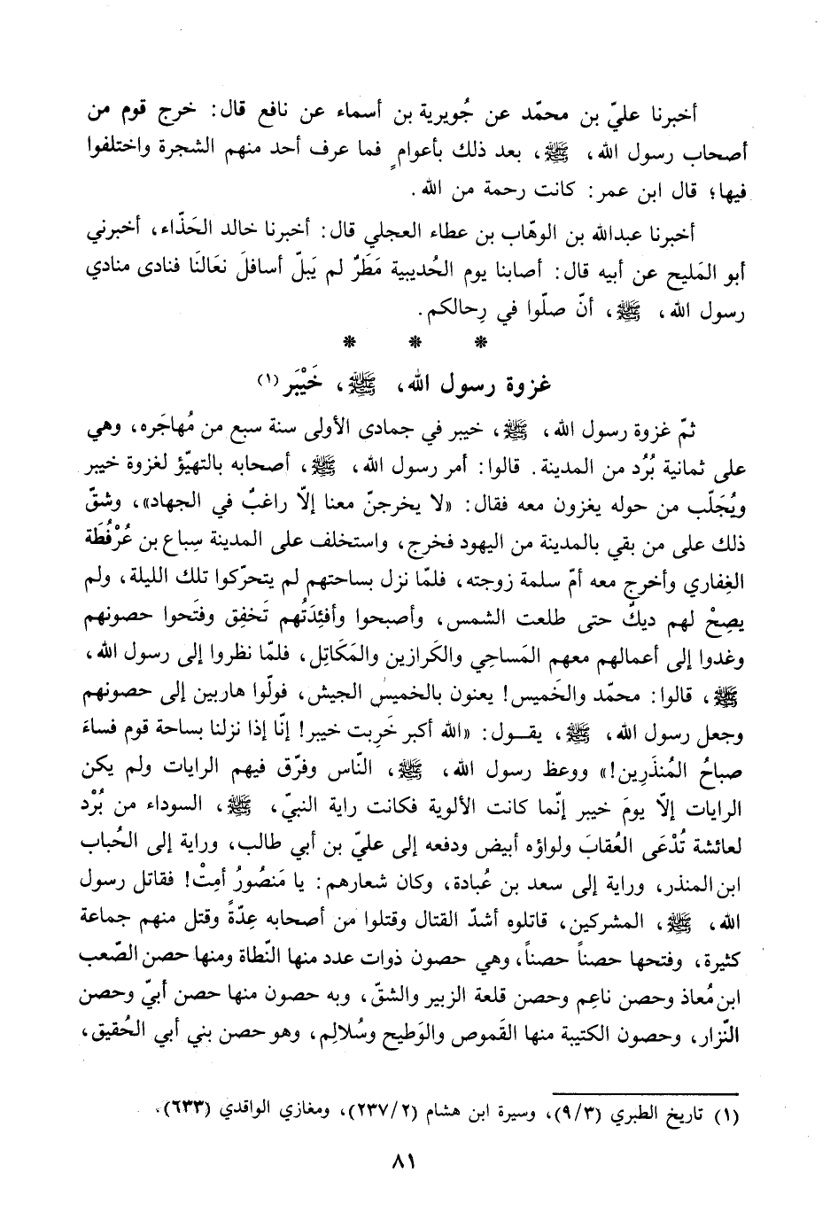 (1) تاريخ الطبري (3/ 9) ، وسيرة ابن هشام (2/ 237) ، ومغازي الواقدي (633) .