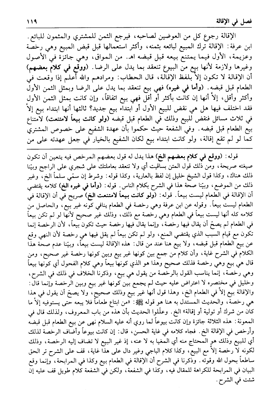 الإقالة رجوع كل من العوضين لصاحبه فيرجع الثمن للمشتري والمثمون للبائع ابن عرفة الإقالة ترك المبيع لبائعه بثمنه