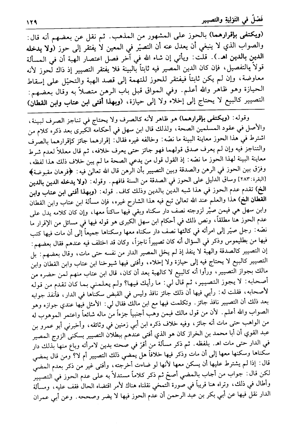 وفي المواق قبل باب الرهن متصلا به وقال بعضهم التصيير كالبيع لا يحتاج إلى إخلاء ولا إلى حيازة وبهذا أفتى ابن عتاب وابن القطان