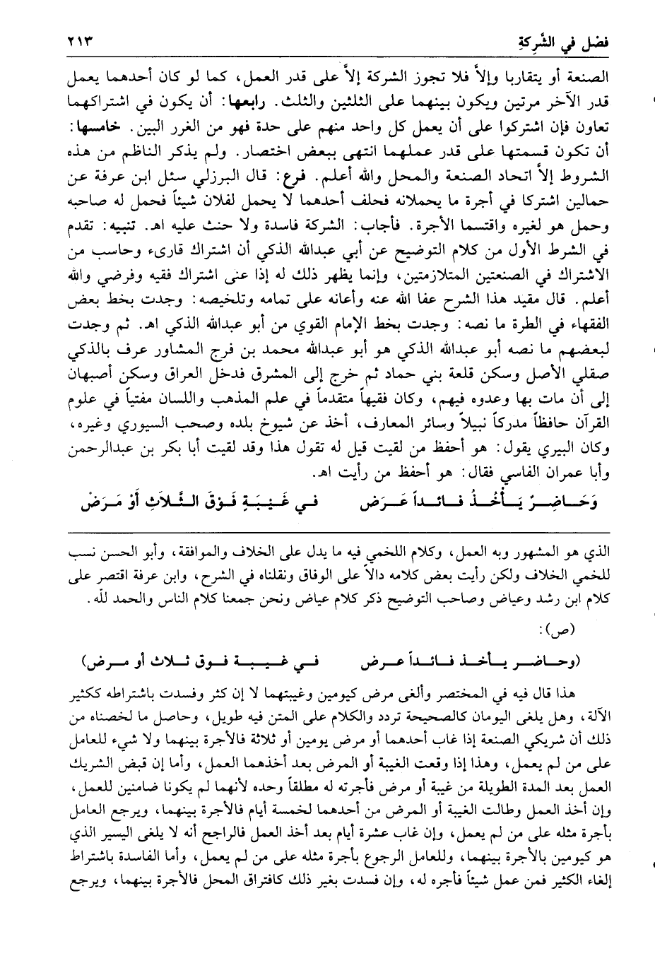 تنبيه تقدم في الشرط الأول من كلام التوضيح عن أبي عبد الله الذكي أن اشتراك قارئ وحاسب من الاشتراك في الصنعتين المتلازمتين وإنما يظهر ذلك له إذا عنى اشتراك فقيه وفرضي والله أعلم