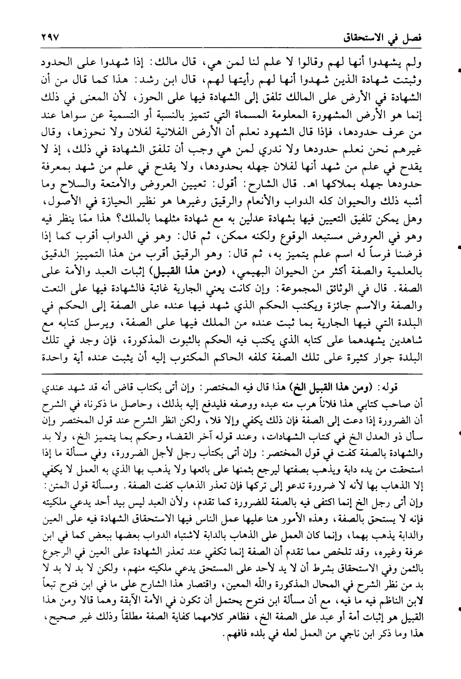 قال الشارح أقول تعيين العروض والأمتعة والسلاح وما أشبه ذلك والحيوان كله الدواب والأنعام والرقيق وغيرها هو نظير الحيازة في الأصول وهل يمكن تلفيق التعيين فيها بشهادة عدلين به مع شهادة مثلهما بالملك هذا مما ينظر فيه وهو في العروض مستبعد الوقوع ولكنه ممكن ثم قال وهو في الدواب أقرب كما إذا فرضنا فرسا له اسم علم يتميز به ثم قال وهو في الرقيق أقرب من هذا التمييز الدقيق بالعلمية والصفة أكثر من الحيوان البهيمي ومن هذا القبيل إثبات العبد والأمة على الصفة