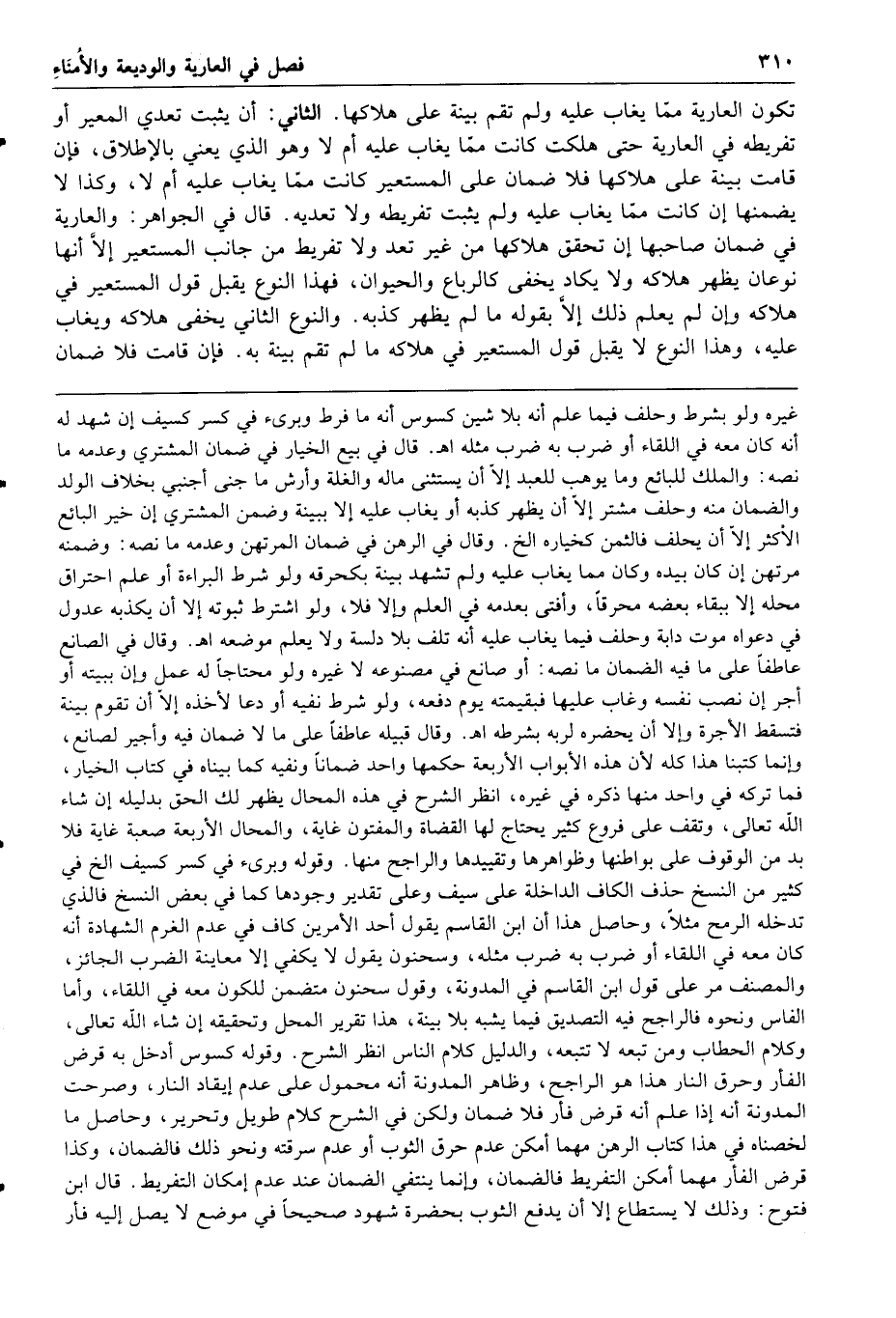 تكون العارية بما يغاب عليه ولم تقم بينة على هلاكها