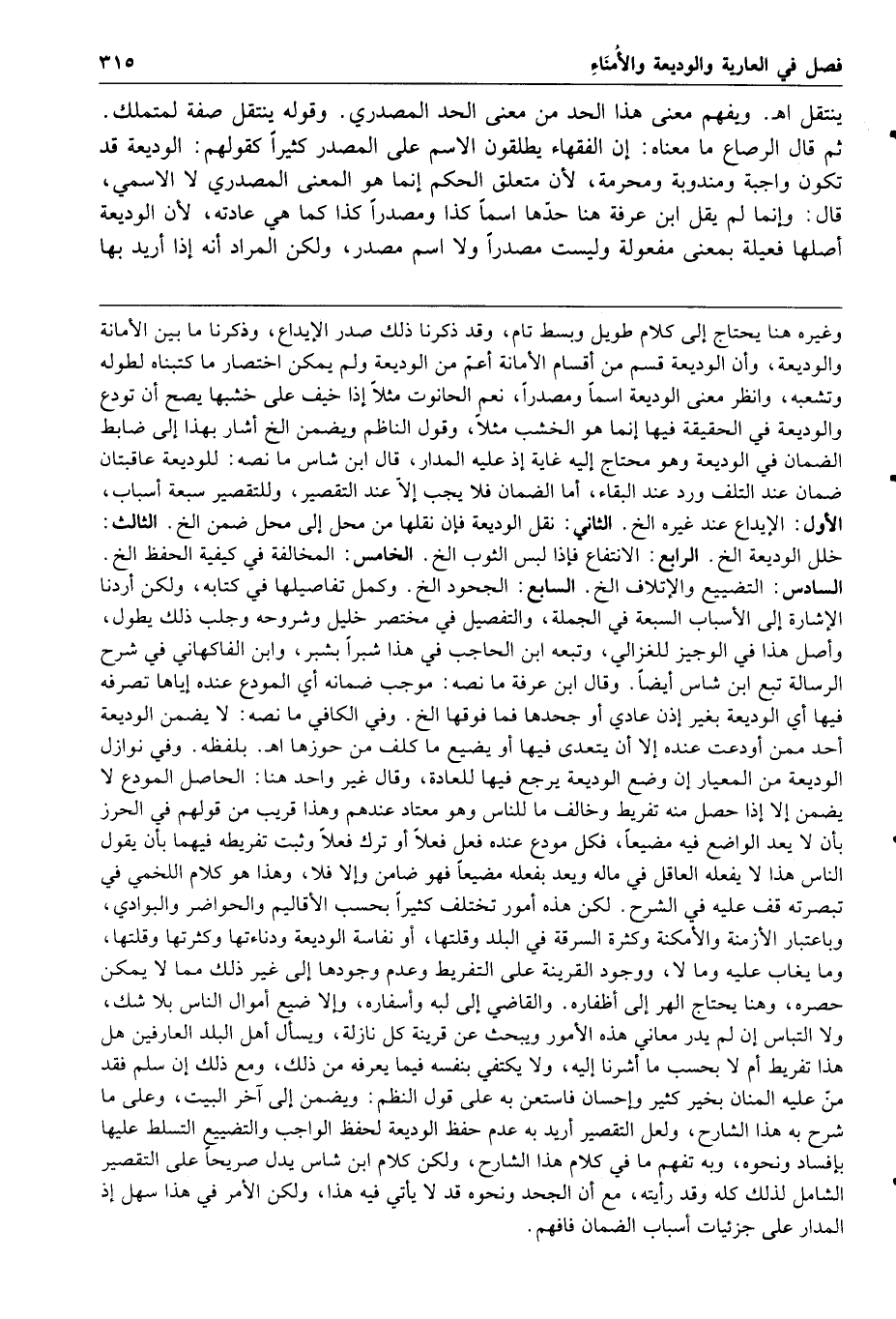 ويفهم معنى هذا الحد من معنى الحد المصدري وقوله ينتقل صفة لمتملك ثم قال الرصاع ما معناه إن الفقهاء يطلقون الاسم على المصدر كثيرا كقولهم الوديعة قد تكون واجبة ومندوبة ومحرمة لأن متعلق الحكم إنما هو المعنى المصدري لا الاسمي قال وإنما لم يقل ابن عرفة هنا حدها اسما كذا ومصدرا كذا كما هي عادته لأن الوديعة أصلها فعيلة بمعنى مفعولة وليست مصدرا ولا اسم مصدر ولكن المراد أنه إذا أريد بها