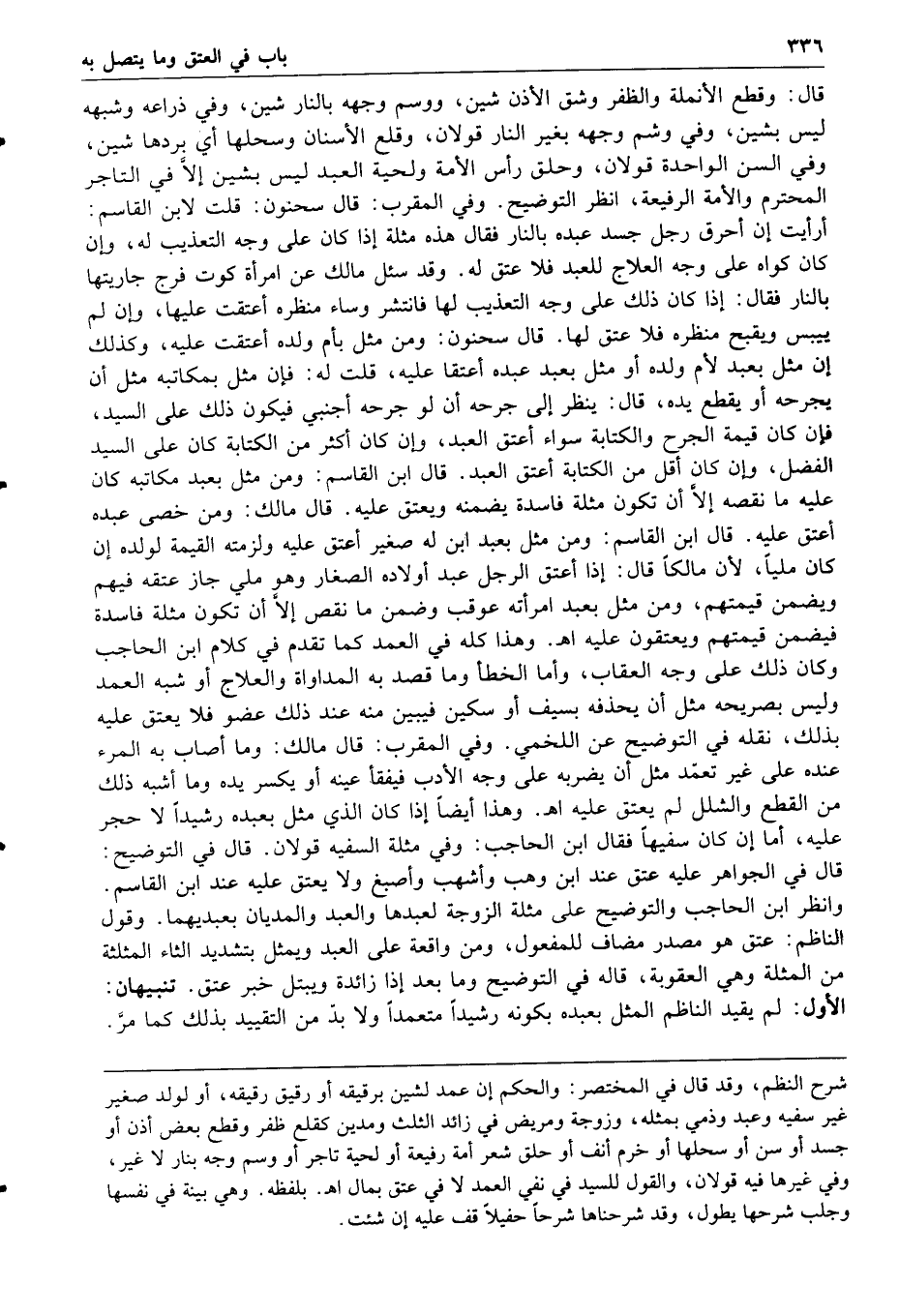 وفي المقرب قال سحنون قلت لابن القاسم أرأيت إن أحرق رجل جسد عبده بالنار فقال هذه مثلة إذا كان على وجه التعذيب له وإن كان كواه على وجه العلاج للعبد فلا عتق له