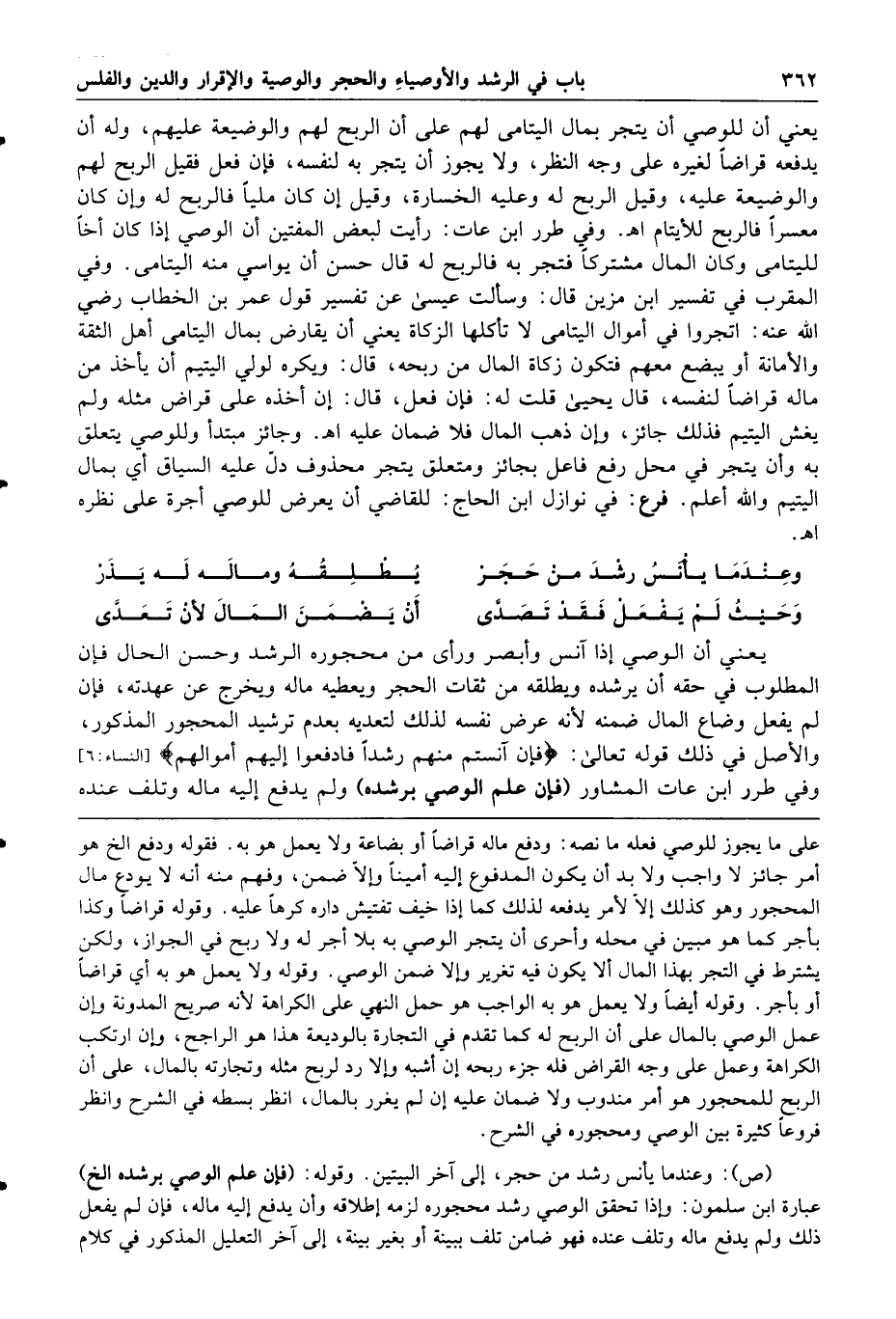 وعندما يأنس رشد من حجر يطلقه وماله له يذر وحيث لم يفعل فقد تصدى أن يضمن المال لأن تعدى يعني أن الوصي إذا آنس وأبصر ورأى من محجوره الرشد وحسن الحال فإن المطلوب في حقه أن يرشده ويطلقه من ثقات الحجر ويعطيه ماله ويخرج عن عهدته فإن لم يفعل وضاع المال ضمنه لأنه عرض نفسه لذلك لتعديه بعدم ترشيد المحجور المذكور والأصل في ذلك قوله تعالى فإن آنستم منهم رشدا فادفعوا إليهم أموالهم وفي طرر ابن عات المشاور فإن علم الوصي برشده ولم يدفع إليه ماله وتلف عنده