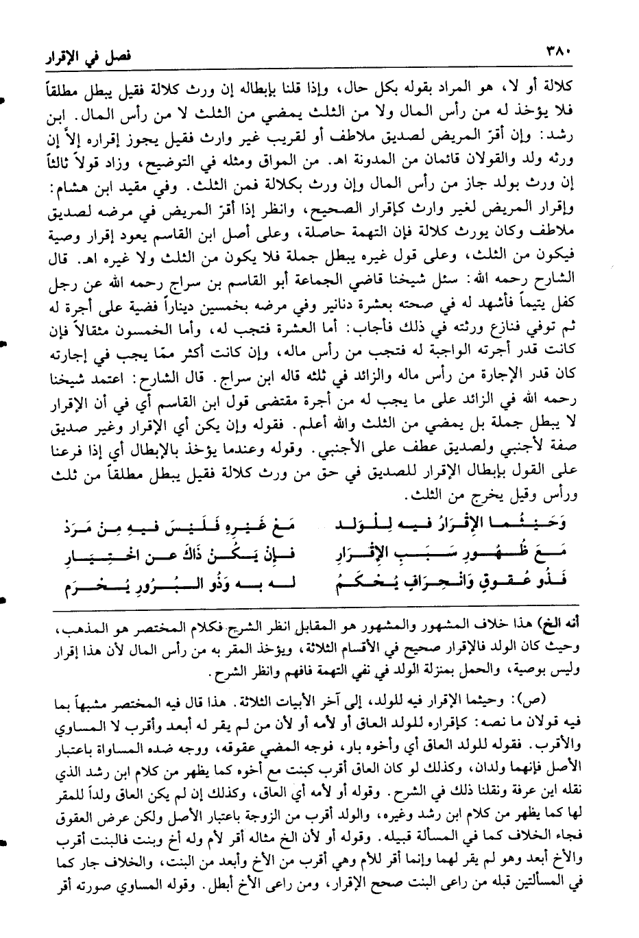 وحيثما الإقرار فيه للولد مع غيره فليس فيه من مرد مع ظهور سبب الإقرار فإن يكن ذاك عن اختيار فذو عقوق وانحراف يحكم له به وذو البرور يحرم