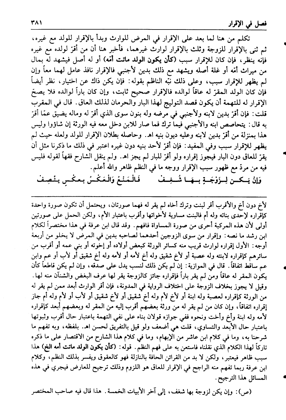 ولم ينقل الشارح فقها لقوله فليس فيه من مرد مع ظهور سبب الإقرار ووجه ما في النظم ظاهر والله أعلم