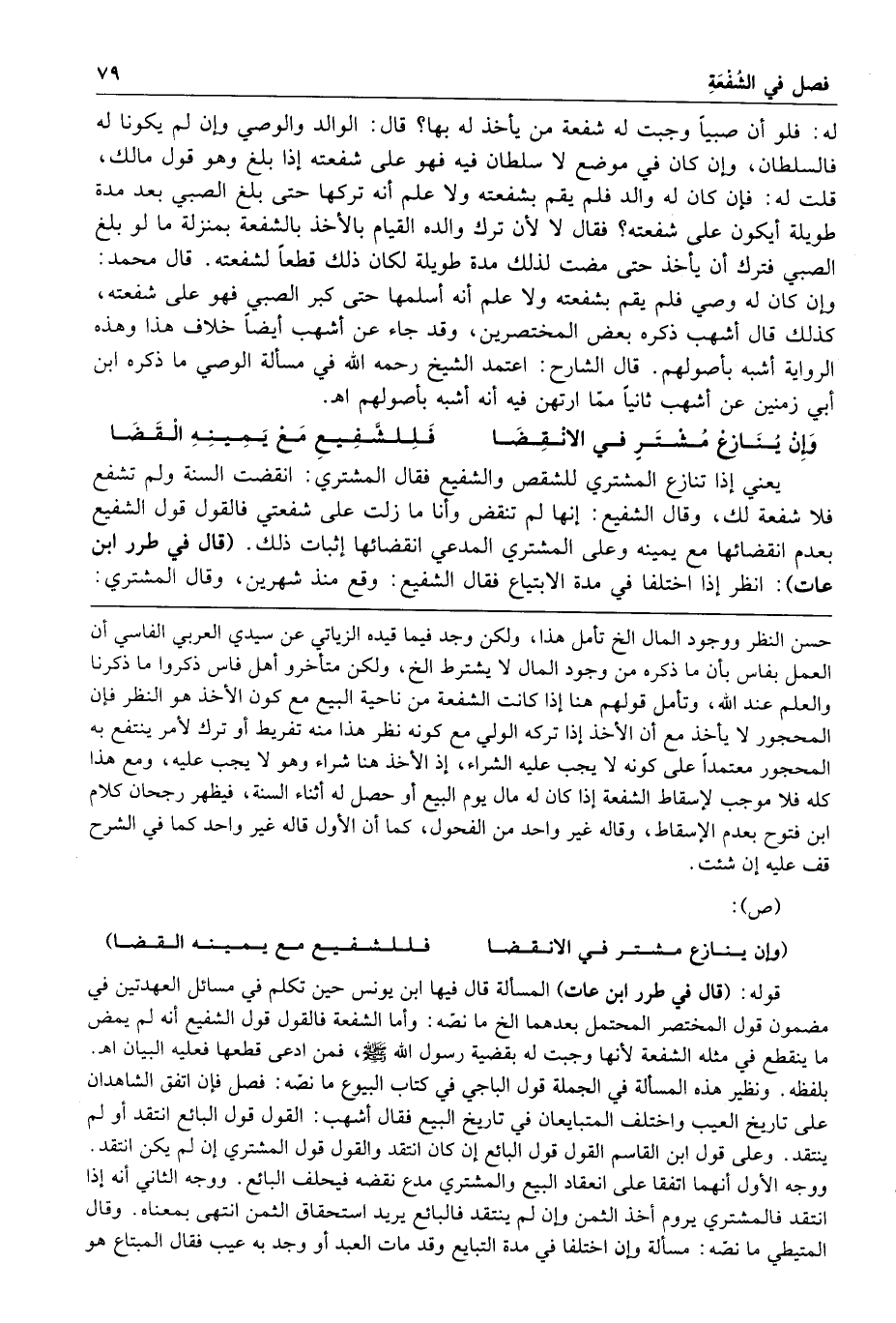 وإن ينازع مشتر في الانقضا فللشفيع مع يمينه القضا يعني إذا تنازع المشتري للشقص والشفيع فقال المشتري انقضت السنة ولم تشفع فلا شفعة لك وقال الشفيع إنها لم تنقض وأنا ما زلت على شفعتي فالقول قول الشفيع بعدم انقضائها مع يمينه وعلى المشتري المدعي انقضائها إثبات ذلك قال في طرر ابن عات انظر إذا اختلفا في مدة الابتياع فقال الشفيع وقع منذ شهرين وقال المشتري