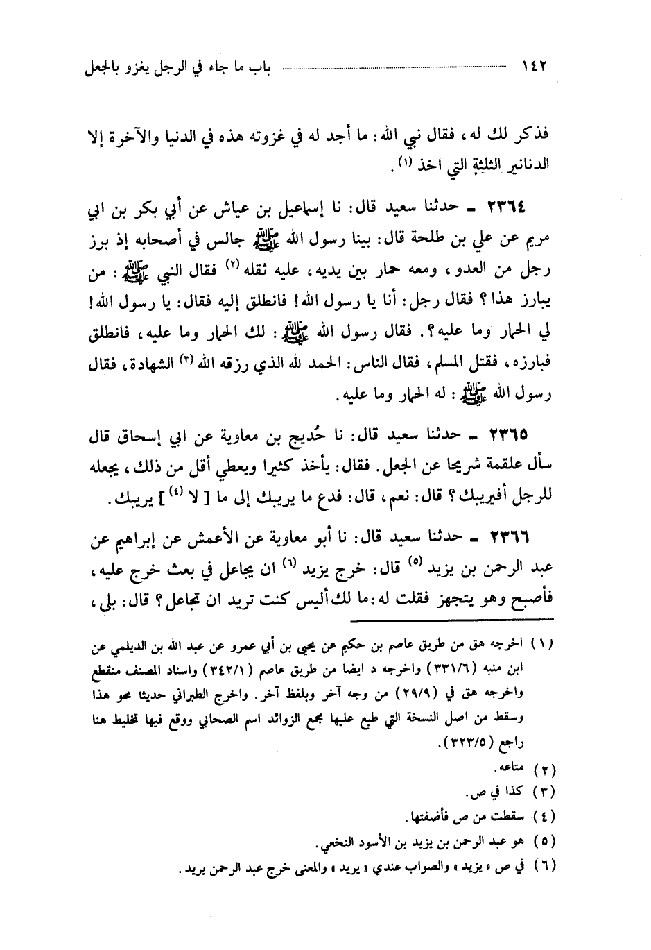 2366- حَدَّثَنَا أَبُو مُعَاوِيَةَ ، عَنِ الأَعْمَشِ ، عَنْ إِبْرَاهِيمَ ، عَنْ عَبْدِ الرَّحْمَنِ بْنِ يَزِيدَ ، قَالَ : خَرَجَ يزِيدُ أَنْ يُجَاعِلَ فِي بَعْثٍ خَرَجَ عَلَيْهِ ، فَأَصْبَحَ وَهُوَ يَتَجَهَّزُ فَقُلْتُ لَهُ : مَا لَكَ ؟ أَلَيْسَ كُنْتَ تُرِيدُ أَنْ تُجَاعِلَ ؟ قَالَ : بَلَى وَلَكِنِّي قَرَأْتُ الْبَارِحَةَ سُورَةَ بَرَاءَةَ فَسَمِعْتُهَا تَحُثُّ عَلَى الْجِهَادِ.