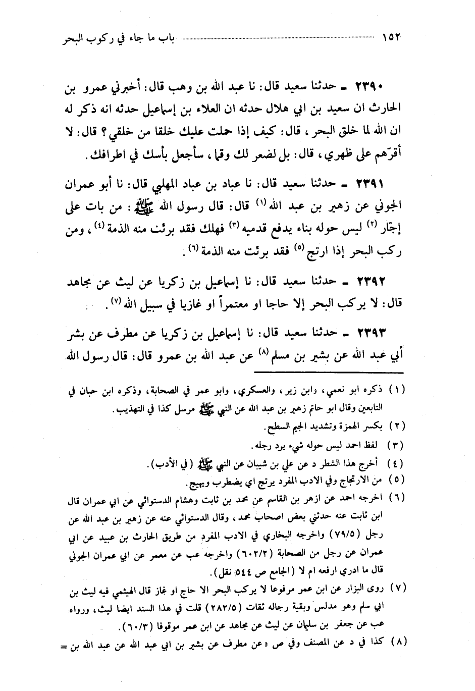 2392- حَدَّثَنَا إِسْمَاعِيلُ بْنُ زَكَرِيَّا ، عَنْ لَيْثٍ ، عَنْ مُجَاهِدٍ ، قَالَ : لاَ يَرْكَبُ الْبَحْرَ إِلاَّ حَاجٌّ أَوْ مُعْتَمِرٌ أَوْ غَازٍيا فِي سَبِيلِ اللهِ.